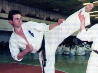 Шихан Сергей Герасимов именно во времена 12-ти часовых экзаменов получал свои первые черные пояса. Предлагаем вашему вниманию его аттестационные бои на 2 Дан, которые он проходил во время дан теста 27 марта 1997 года. Это самые первые экзамены в Москве, которые проходили в присутствии японских мастеров.