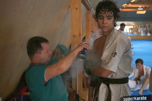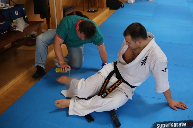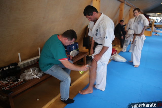 Так как все тренировки были посвящены кумитэ и боев было много, в доджо присутствовал врач, который контролировал состояние бойцов и в случае необходимости приходил им на помощь.