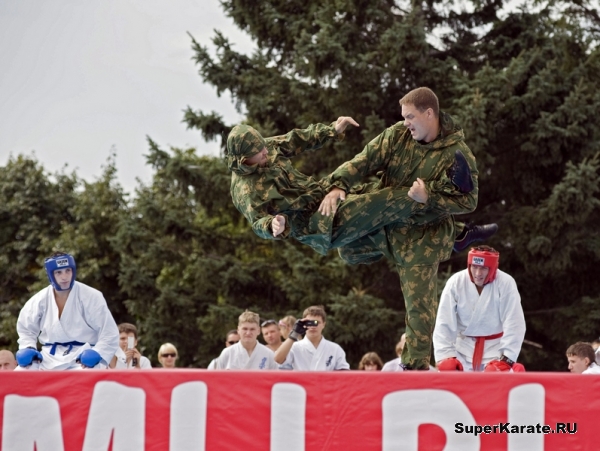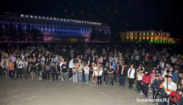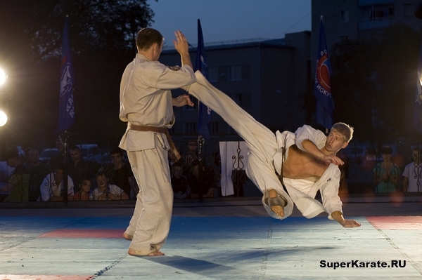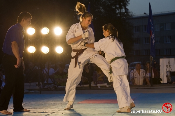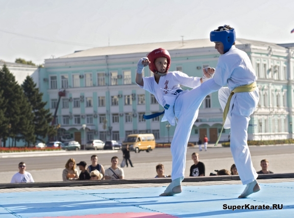 Первыми на татами вышли каратисты. Бои начались с поединков самых юных спортсменов – подростков 12-13 лет, через полтора часа их сменили старшие товарищи. В полдень показательные выступления для горожан начали проводить спортсмены школы каченуке, федераций джиу-джитсу и рукопашного боя.