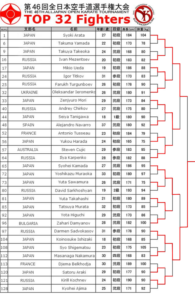 [spoiler=Топ 32 - бойцы прошедшие во второй день соревнований]1. Syoki Arata