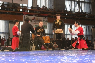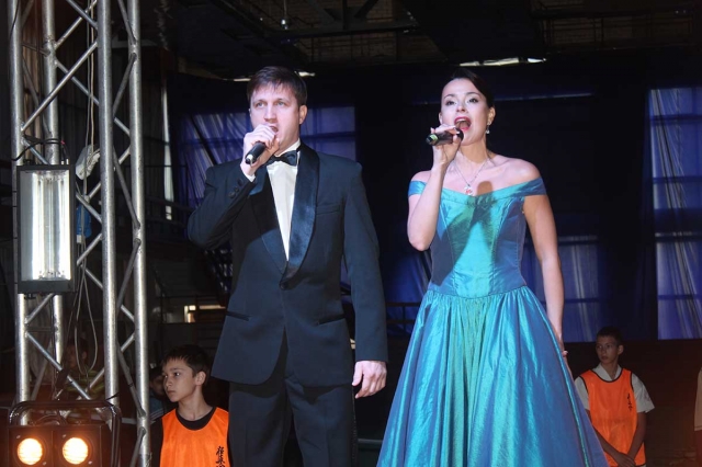 Что ни говори, а ребятам и зрителям действительно есть, что вспомнить. В один момент резко погас свет, и весь манеж наполнился робкой тишиной и тайной. Неловкую паузу оборвало яркое, красочное лазерное шоу, поражающее своим масштабом и оригинальностью. Красоты компьютерной графики сменило живое выступление Виталия Юксенова и Ольги Никитиной – солисты творческого объединения «Премьера им. Л.Гатова» исполнили гимн Российской Федерации, ошеломив присутствующих чистотой и волшебством исполнения.