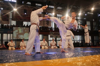 Под прицелом профессиональных видеокамер, транслирующих турнир в онлайн-режиме, «на мушке» десятков фотографов и журналистов, начались финальные поединки. Дерзкие, агрессивные экзаменационные испытания воочию показали гостям силу боевого искусства.