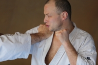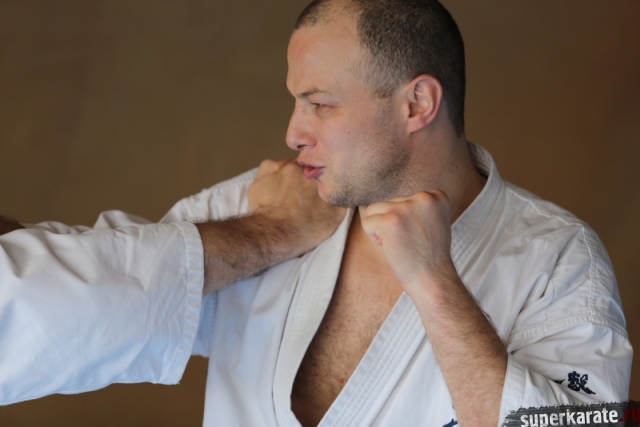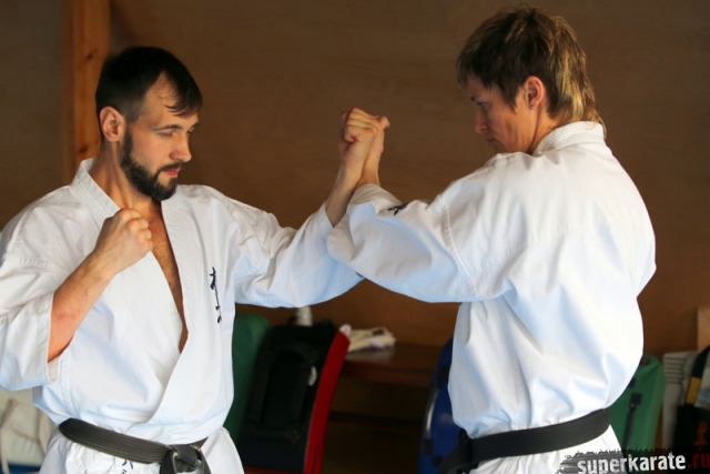 Кумитэ Дармена Садвокасова, которое он предложил семинаре, было построено на принципе поиска условной «точки опоры» в теле противника. Это то место до которого удалось достучаться атаками и соперник начинает на него реагировать. Как только появляется контроль над такой «точкой», противник на уровне рефлексов начинает локально концентрироваться и «вестись» на провокации вокруг этой «точки». При этом от ваших атак таких «точек» у соперника может появиться несколько и вы можете использовать разные варианты их контроля.