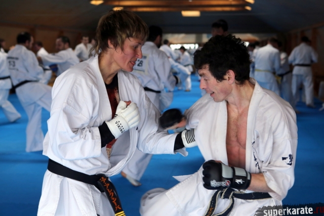 Еще, как важный момент нужно отметить, что Дармен Садвокасов настаивает на тренировочном кумитэ с близким к максимальному контакту. И рекомендует полностью исключить из тренировочного процесса ограниченный контакт, который не развивает ни каких важных для бойца-контактника качеств, а значит является пустым.