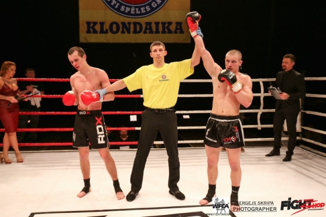 Сэнсей Марек Лавринович - звезда латвийского кикбоксинга, вместо боя за титул Чемпиона Европы, из-за травмы бойца из Германии Марека Лящиски, получил в соперники белоруса Евгения Апановича. Белорускому бойцу в первом раунде удалось отправить в нокдаун Марека Лавриновича, но опытный литовец смог восстановится и постепенно перехватил инициативу. Во втором раунде секунданты сломленного соперника попросили рефери остановить поединок.