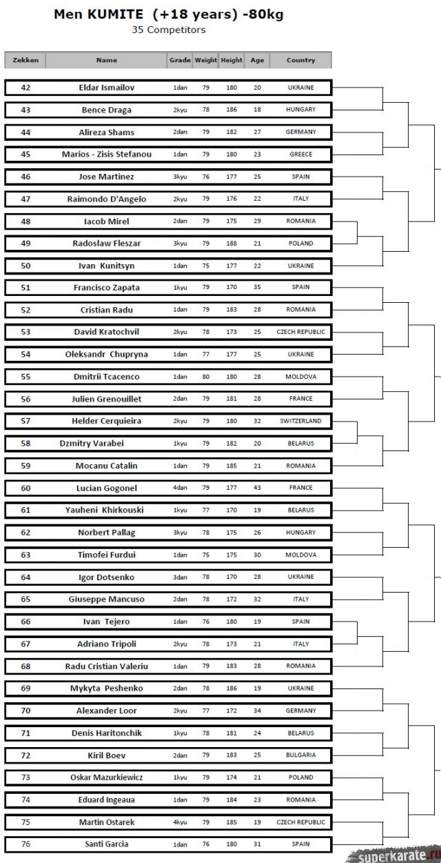 Чемпионат Европы Киокушинкай 2015. Мужчины до 80 кг