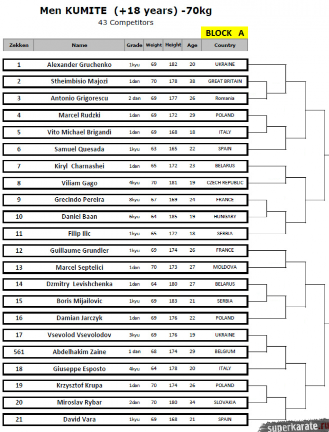 Предлагаем вашему вниманию официальные пули 29th European Weight Category Kyokushinkai Karate Championships.
