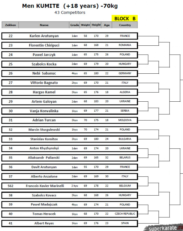 Чемпионат Европы Киокушинкай 2015. Мужчины до 70 кг