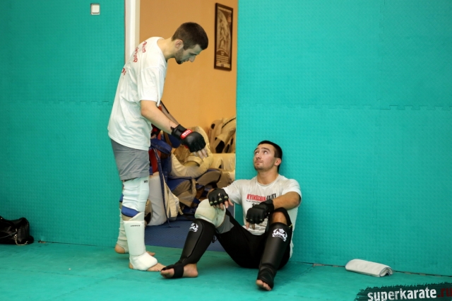 Пять дней в неделю утром и вечером он, как и остальные спортсмены, приходит на тренировки с одной целью - быть готовым и дать бой на Чемпионате мира. В зале у сэнсея Леонова достаточно крепких бойцов с большим опытом международных выступлений. Подготовка бок о бок с мотивированными бойцами приносит пользу всем участникам процесса.