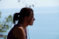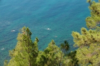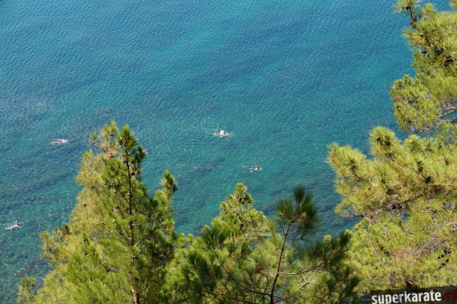 деревьями и камнями на фоне 40 градусной жары и полного штиля на море