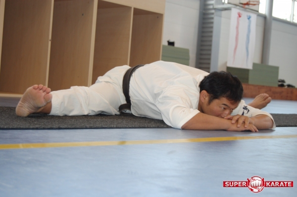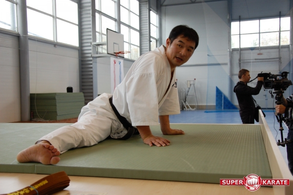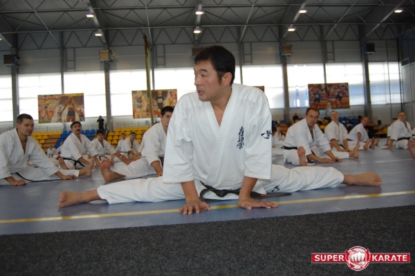 В 36 лет имея превосходную растяжку, Кияма Хитоши в поперечном шпагате коснулся грудью пола и предложил всем сделать это простое упражнение... В ответ были только улыбки.