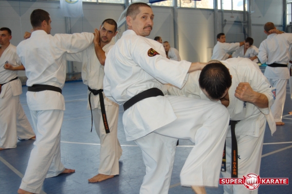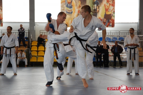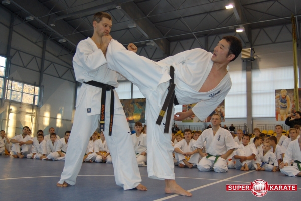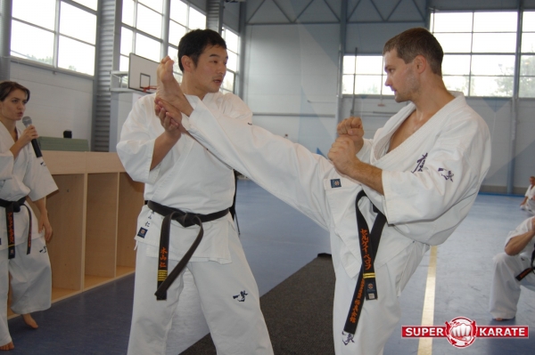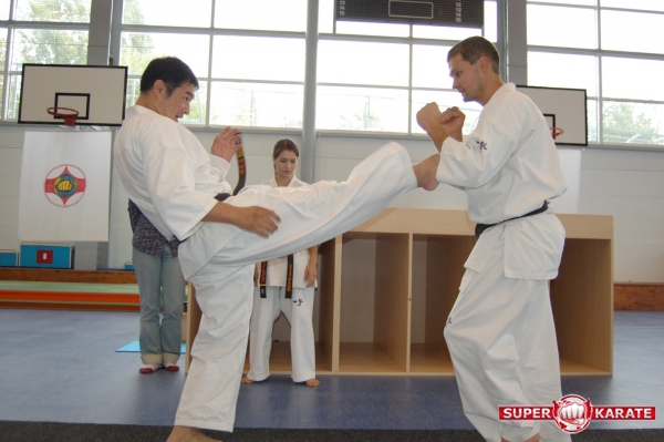 Особое внимание на тренировках уделялось прикладному киокушину. Шихан сказал, что, да, мы выступаем на турнирах в рамках правил, но каждый из нас должен уметь постоять за себя не только на татами, но и в жизни. С легкостью, переложив простейшие приемы каратэ на реальный бой, шихан вновь и вновь ронял на пол добровольца из первого ряда... С такой же легкостью, не опуская колена, Кияма Хитоши наносил удары во все открытые области своего оппонента - скорость и техника этого бойца впечатляют.