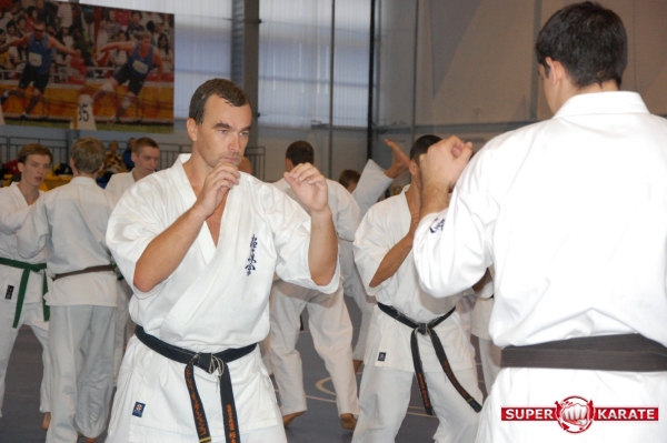Действительно, пять тренировок - на одном дыхании, с выстроенной подачей информации. Кияма-боец показывал свои коронные маваши гери, разные траектории - разные цели атаки. Противник сбит с толку и не успевает понять, куда будет нанесен следующий удар. Кияма-инструктор детально объяснял, что без понимания кихона, без постоянной отработки элементарной базовой техники не может быть кумитэ. Шихан акцентировал внимание на работе бедер при ударах руками и ногами и часто повторял о необходимости "закрывать танден", тем самым давая понять, что любой удар не есть только механическое движение конечностей, а передача мощной энергии.