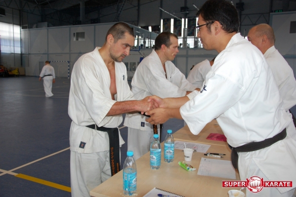 Экзамен сдавали 14 человек, из которых шесть - на третий дан. Шихан еще раз обратил особое внимание на необходимость не только знать, но и понимать ката - где находится противник, с какой реальной скоростью он атакует, по какой траектории будет максимально эффективный блок и т.д.