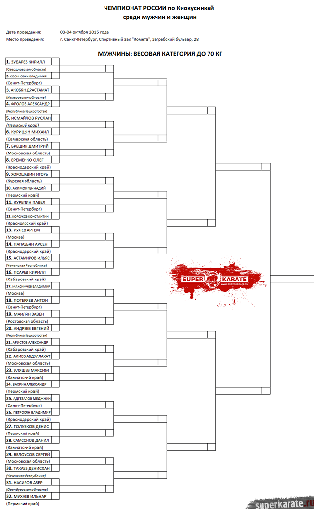 Пули Чемпионата России 2015 по киокусинкай (киокушинкай IKO)