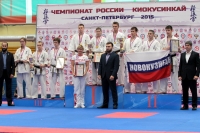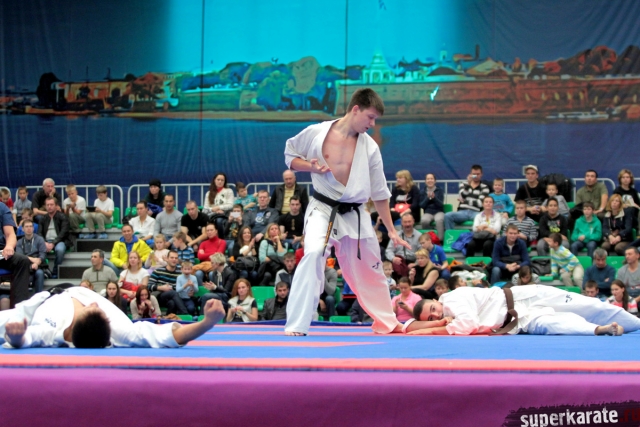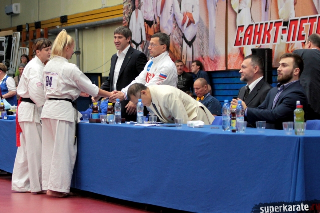 Удивительно, но единственная серьезная травма Чемпионата России случилась у... катистов. Во время финального выступления ката-группы один из спортсменов получил травму барабанной перепонки и был госпитализирован.