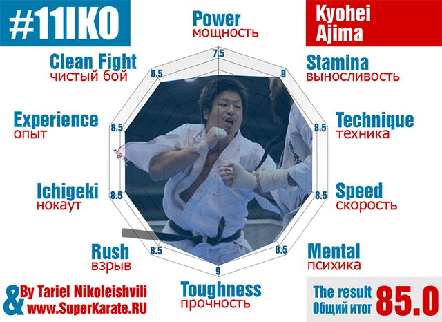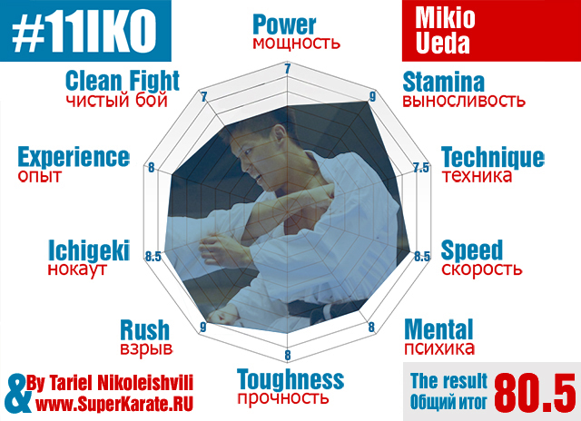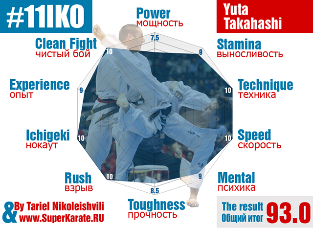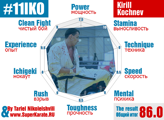 Действующий абсолютный Чемпион мира Тариел Николеишвили дал свой сравнительный анализ бойцов, которые являются самыми главными претендентами на чемпионский титул 11-го абсолютного Чемпионата мира по киокушинкай каратэ. Мы уже публиковали похожий рейтинг бойцов от шихана Кидачи. Но в анализе Тариела использовались дополнительные критерии (опыт и «фолизм») для бойцов и максимальная оценка была строго ограничена 10 баллами. Также Чемпион оценил свои характеристики, которые у него были на момент 10 Чемпионата мира.