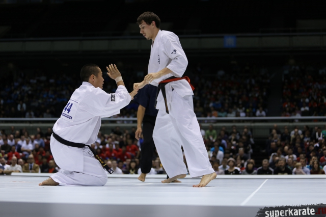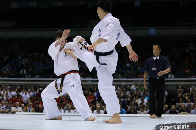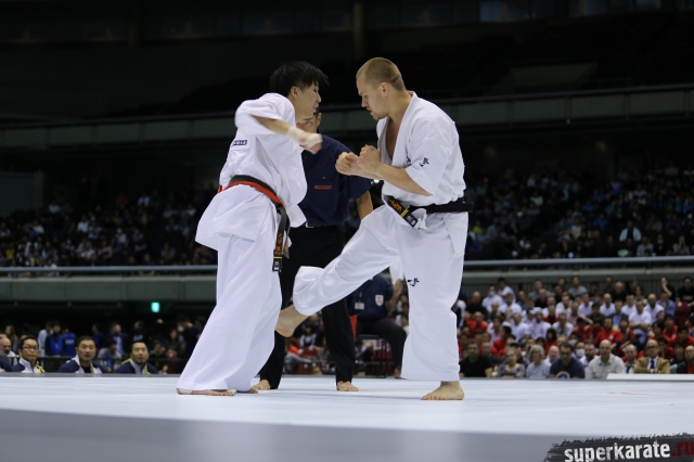 Иван Мезенцев в бою с Максимом Максимовым и Белоруссии закончил бой быстрым, точным и единственным ударом уширо гери. Возможно, если учитывать и доли секунд, это самый быстрый удар в истории чемпионатов мира. Его сопернику можно только посочувствовать, он не успел сделать ни одного удара на этом чемпионате.