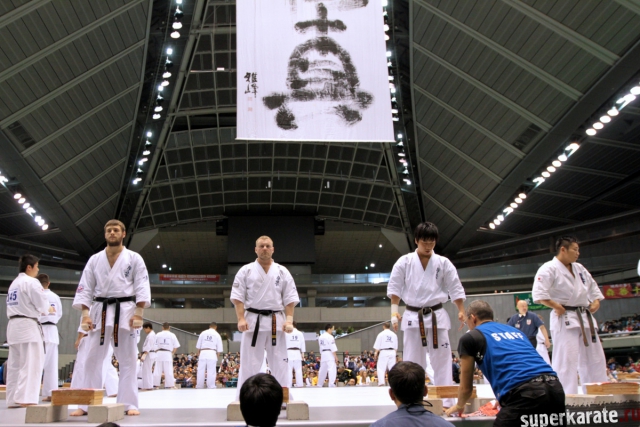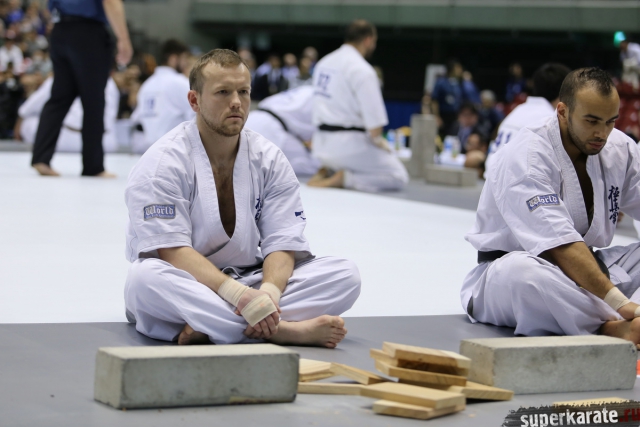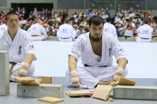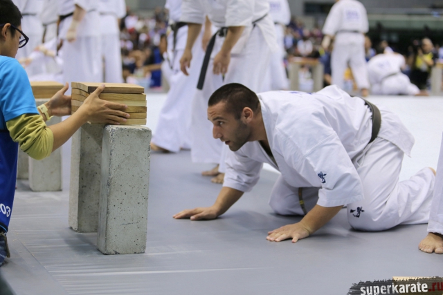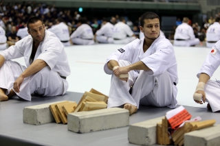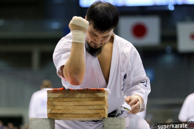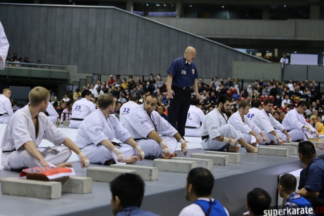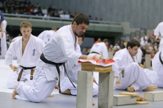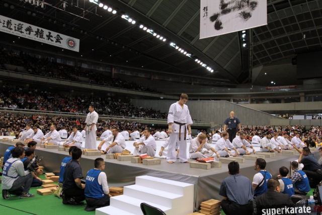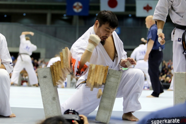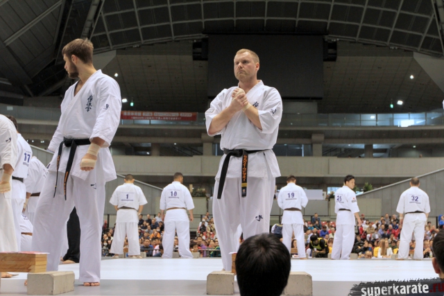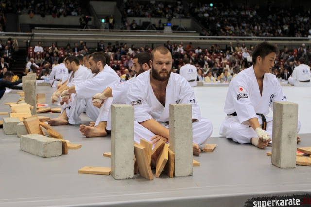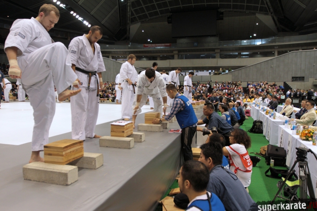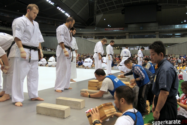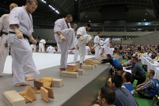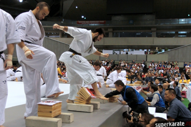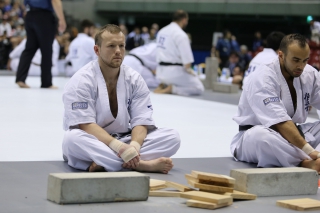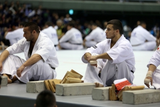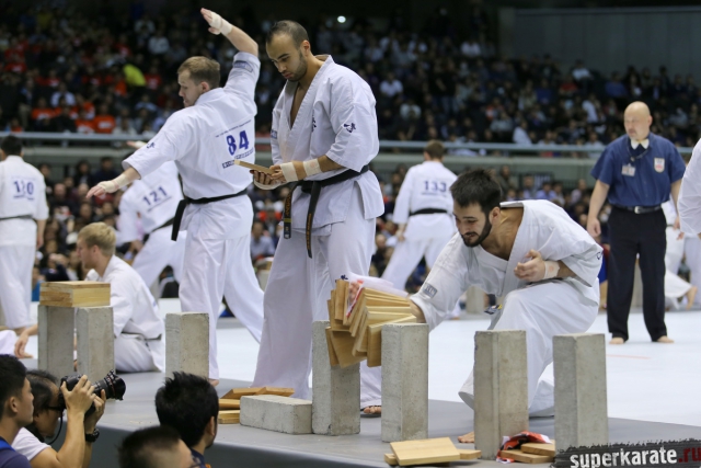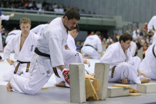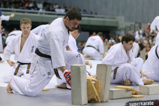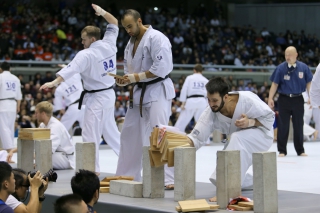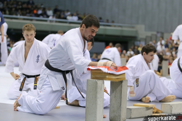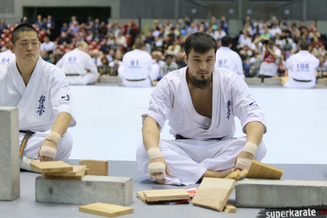 32 сильнейших бойца, вышедшие в финальный день 11 абсолютного Чемпионата мира по киокушинкай в Токио, перед продолжением поединков, прошли испытание тамэсивари.