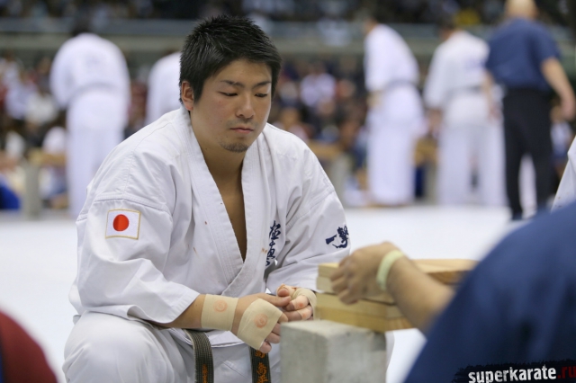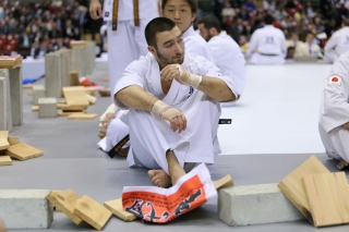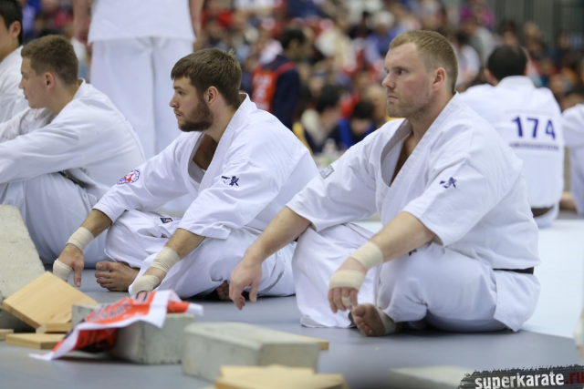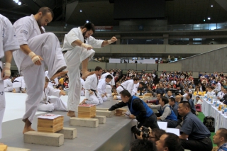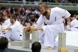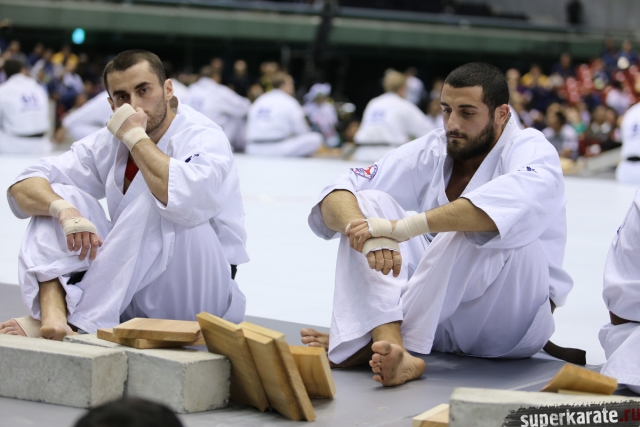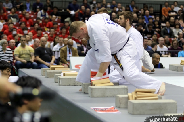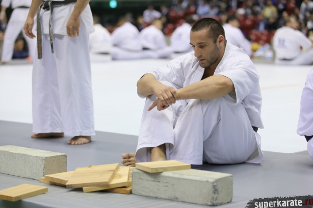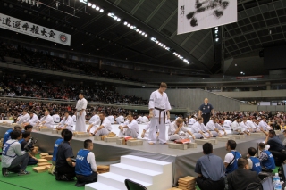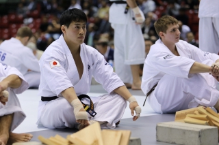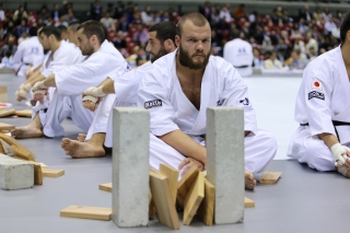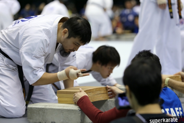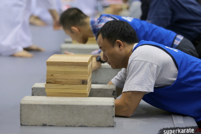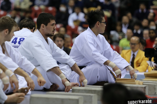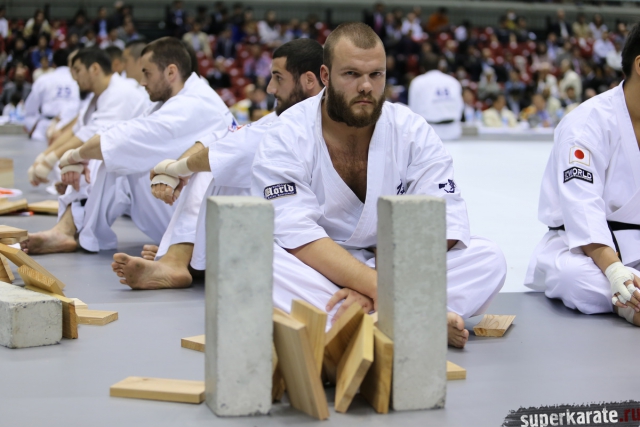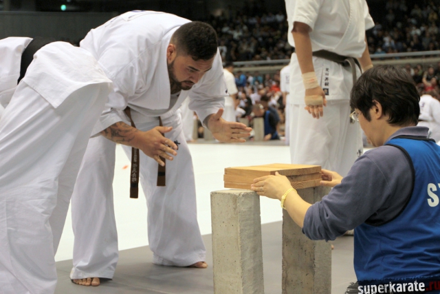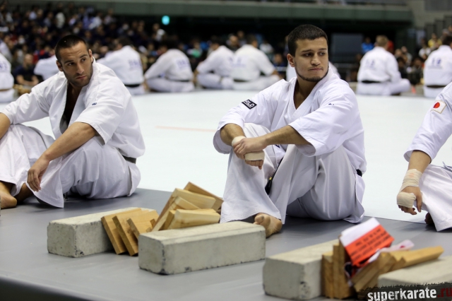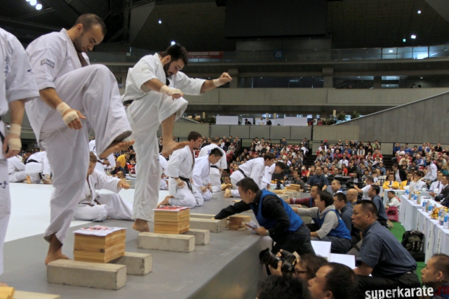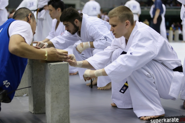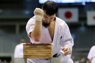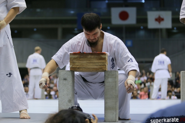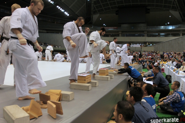 32 сильнейших бойца, вышедшие в финальный день 11 абсолютного Чемпионата мира по киокушинкай в Токио, перед продолжением поединков, прошли испытание тамэсивари.