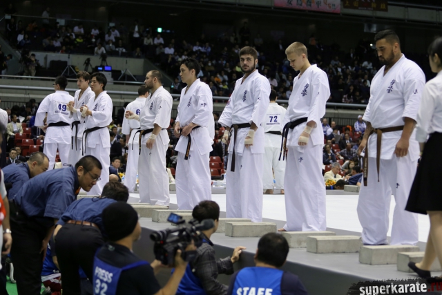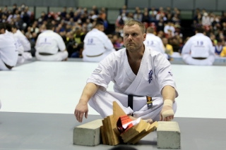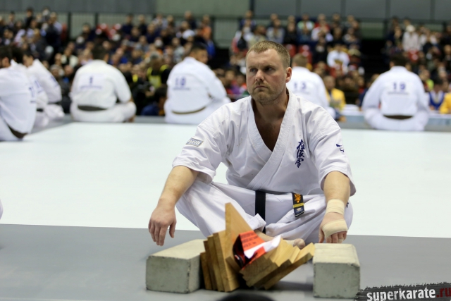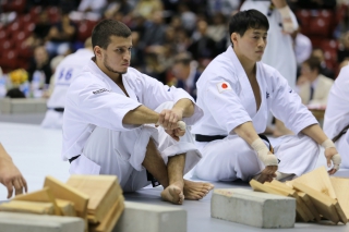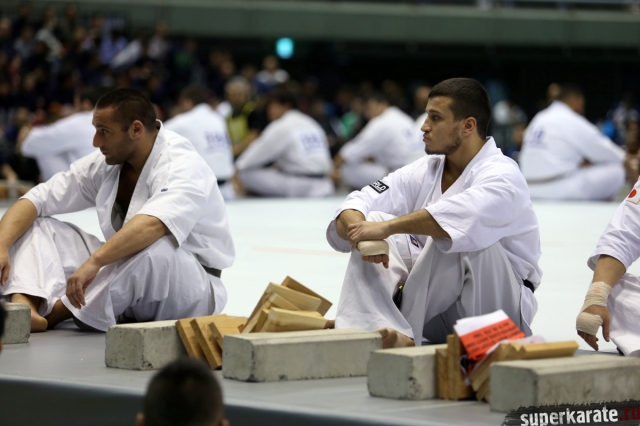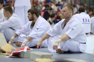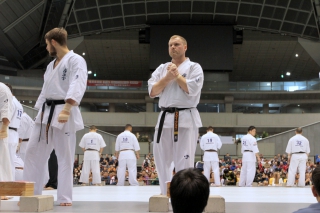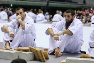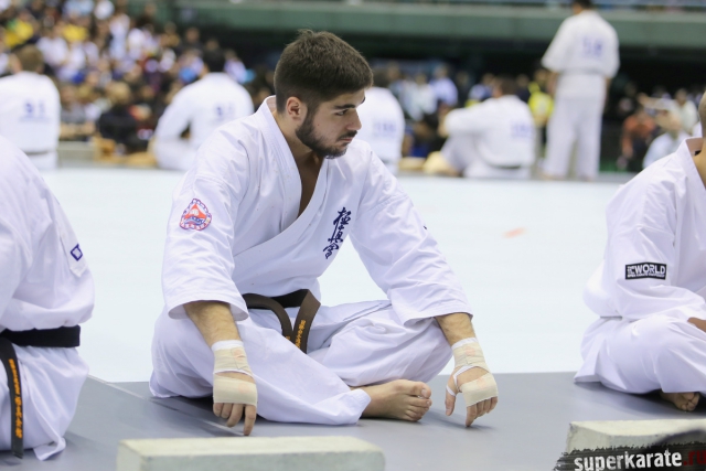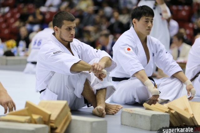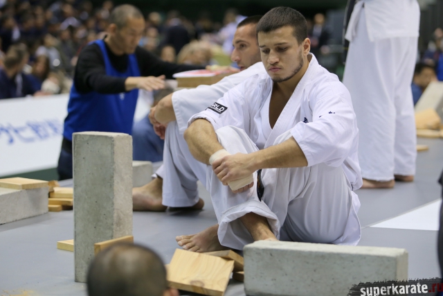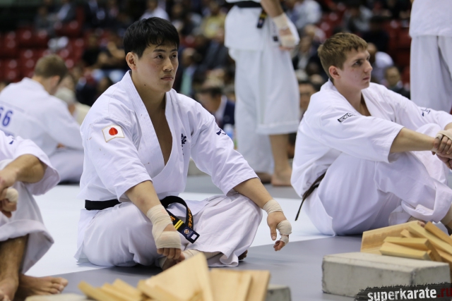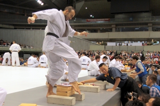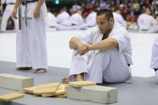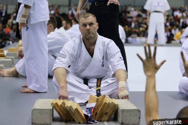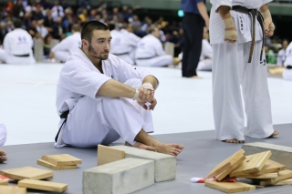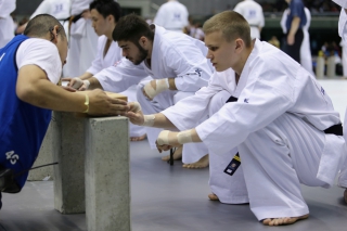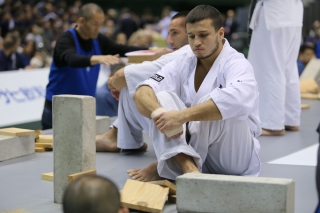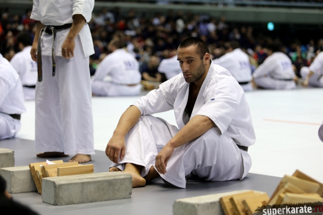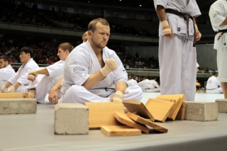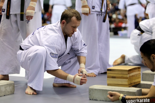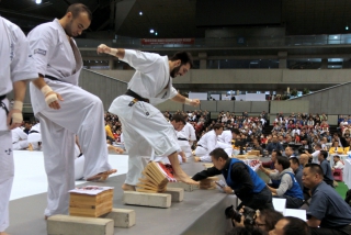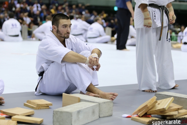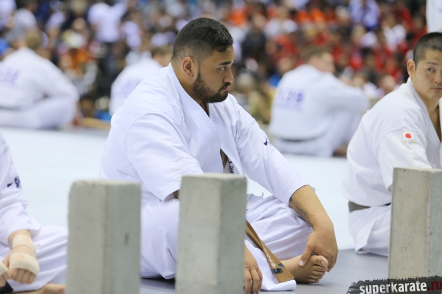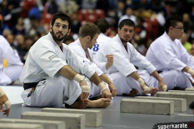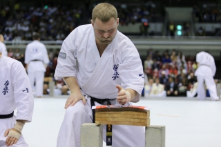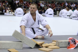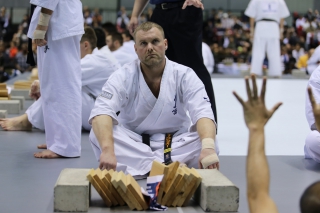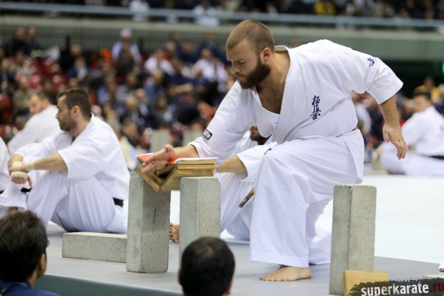 32 сильнейших бойца, вышедшие в финальный день 11 абсолютного Чемпионата мира по киокушинкай в Токио, перед продолжением поединков, прошли испытание тамэсивари.