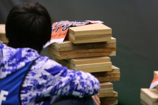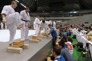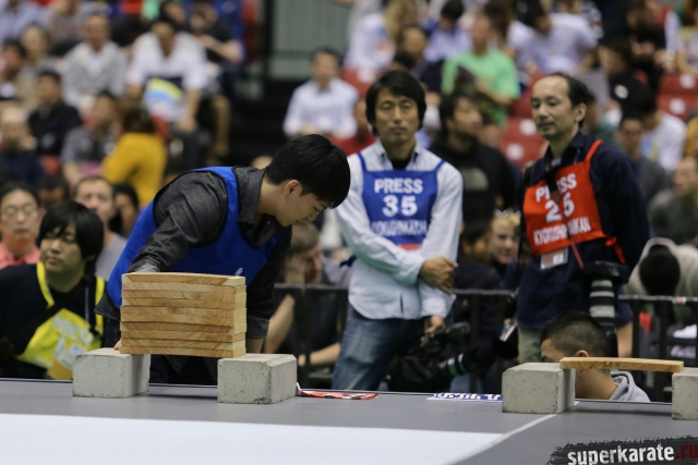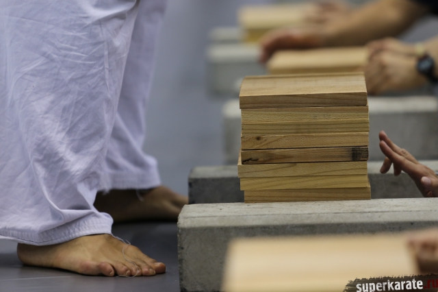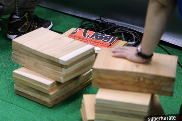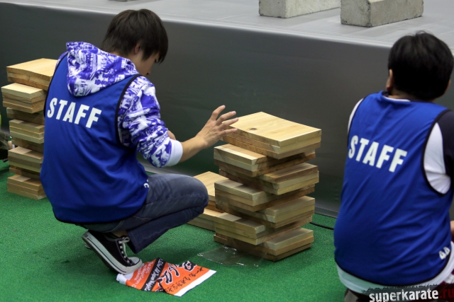 Одно из неприятных нововведений на тамэшивари, это установка досок и блоков помощниками (staff), без возможности замены досок и перемещения блоков. Именно так было объявлено по громкой связи для бойцов и зрителей перед тамэшивари.