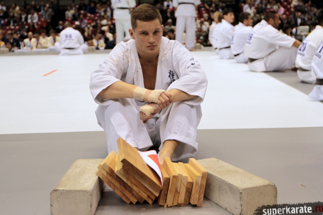 Интересно, что громадный новозеландец Лукас Маккинон, искренне почувствовавший себя звездой турнира и посылающий с татами воздушные поцелуи зрителям, при собственном весе 125 кг и росте под 190 см, заказывал лишь обязательный минимум досок. И с явным удовольствием крушил громадными конечностями по три дощечки (общий результат 12 досок).