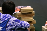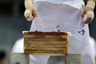 Кстати, самый маленький (164 см) и легкий (70 кг) боец, из дошедших до стадии тамэшивари, - Такаичи Онума, сумел завалить четыре попытки, но в итоге тоже сломал 12 досок.