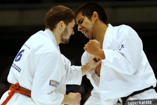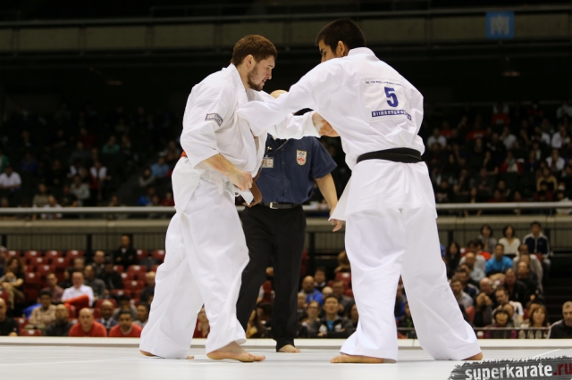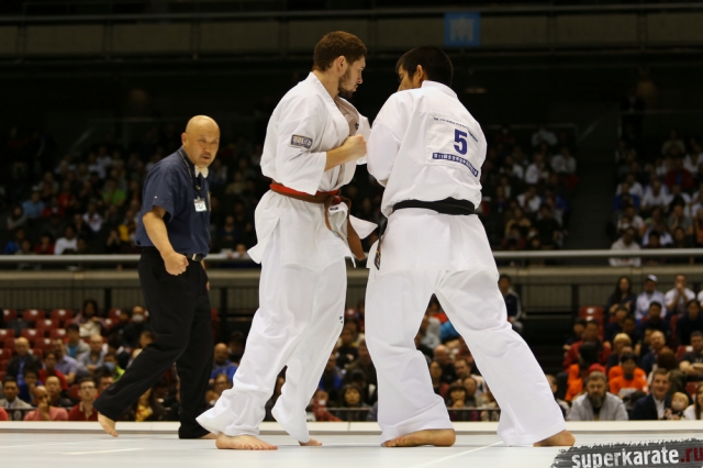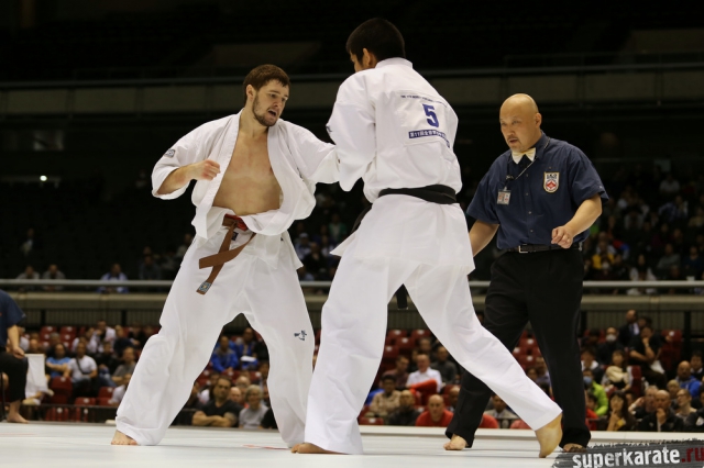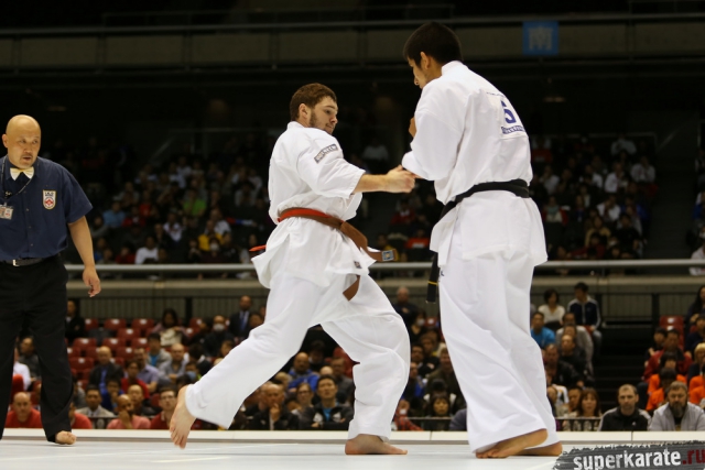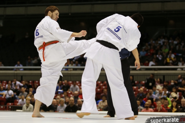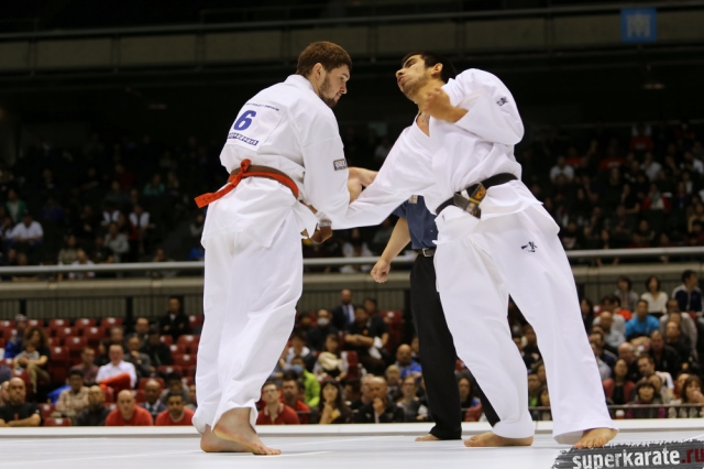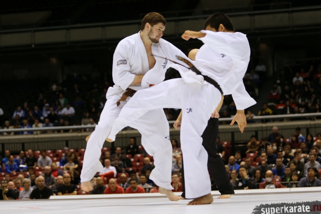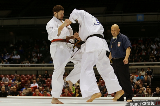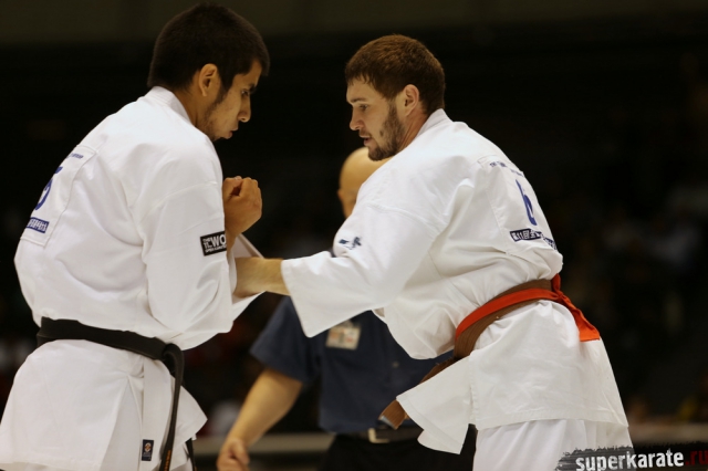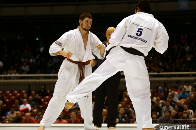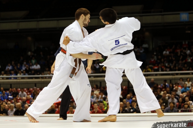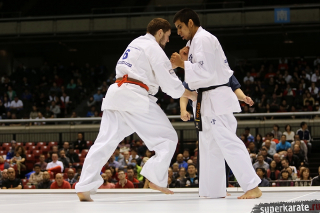 Во втором бою 11-го абсолютного Чемпионата мира по киокушинкай каратэ, на татами вышел первый боец от российской команды. Андрей Зуборев из Курска встретился с достаточно крепким аргентинцем Пауло Зулета (Paulo Zuleta).