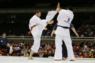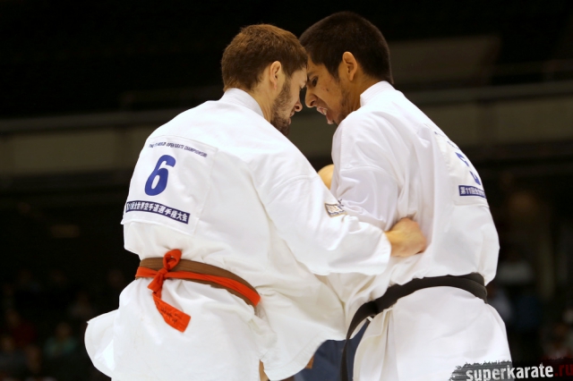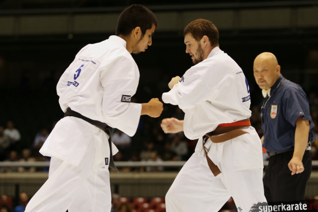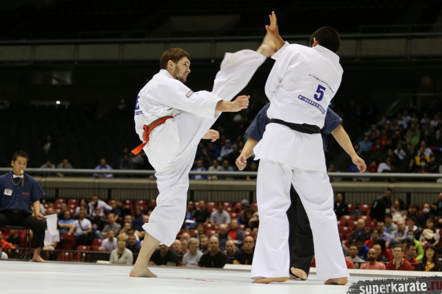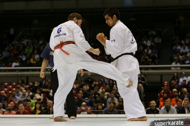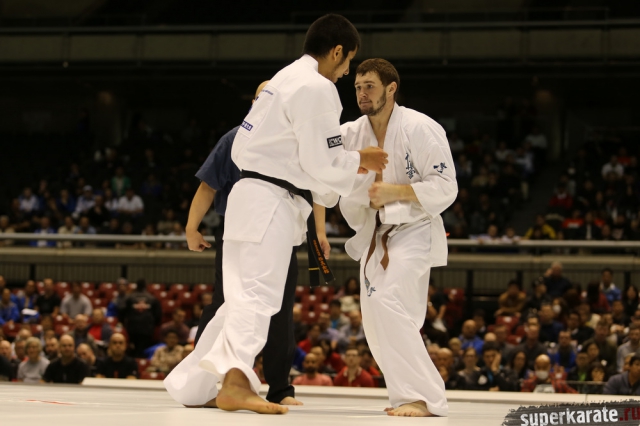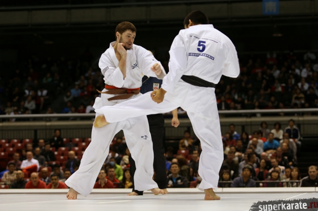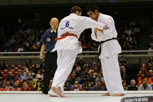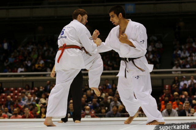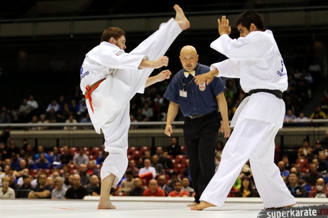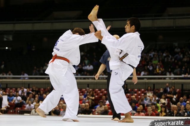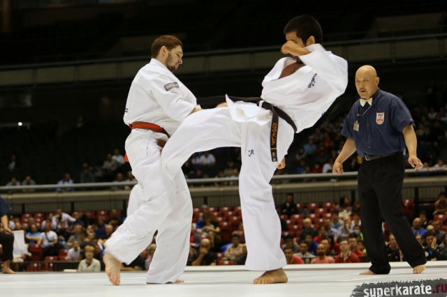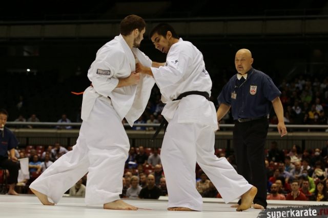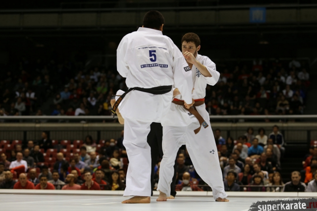Во втором бою 11-го абсолютного Чемпионата мира по киокушинкай каратэ, на татами вышел первый боец от российской команды. Андрей Зуборев из Курска встретился с достаточно крепким аргентинцем Пауло Зулета (Paulo Zuleta).