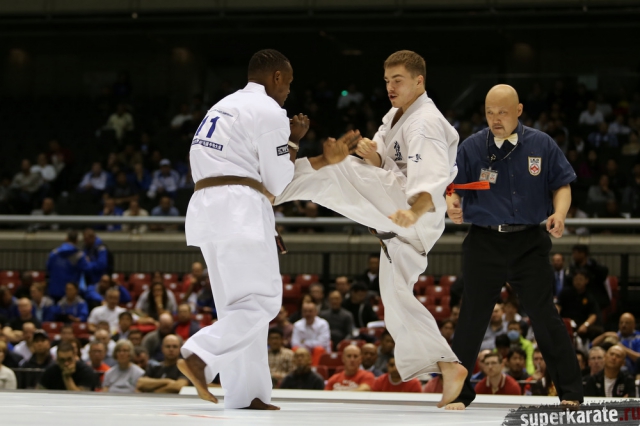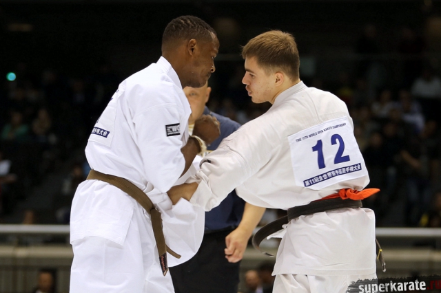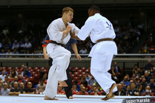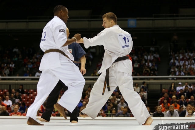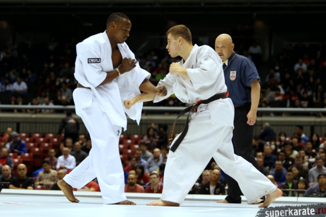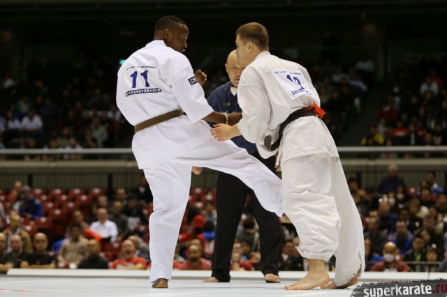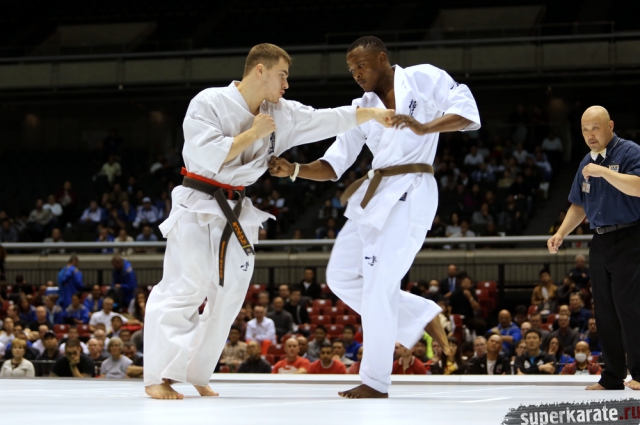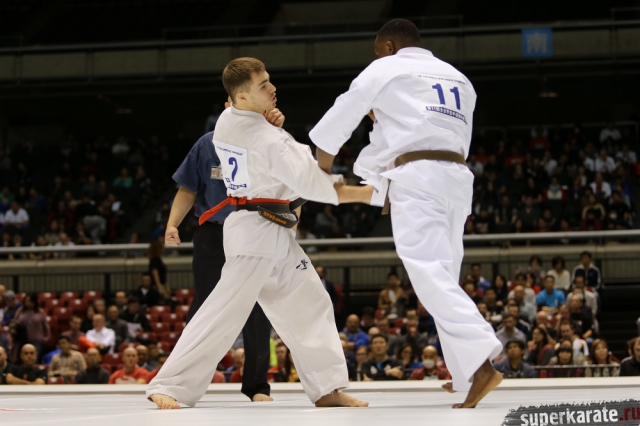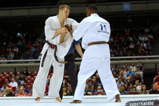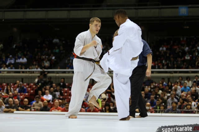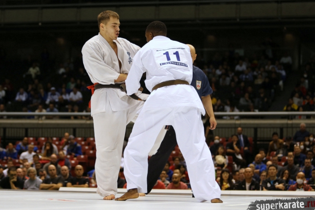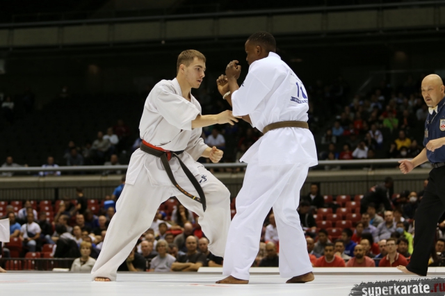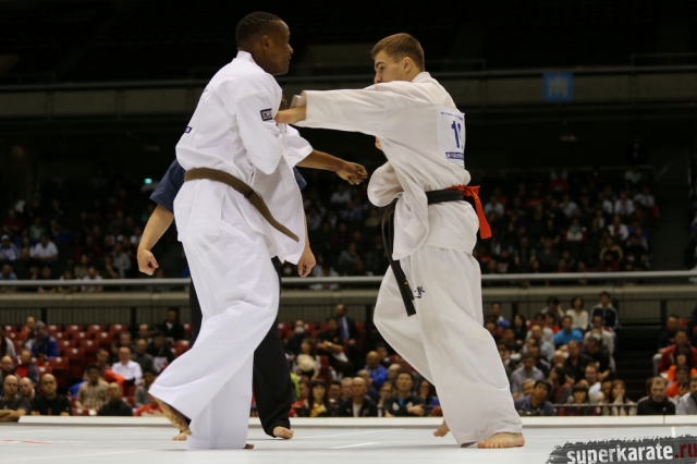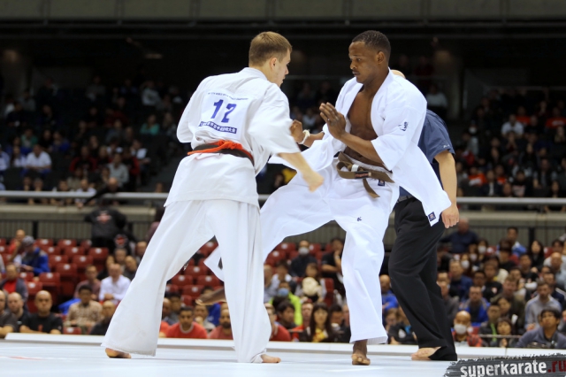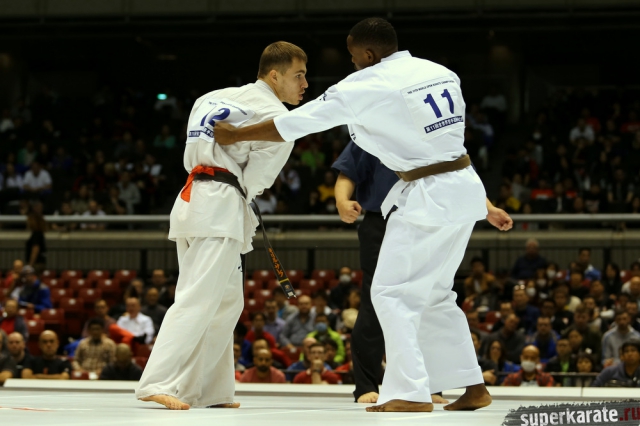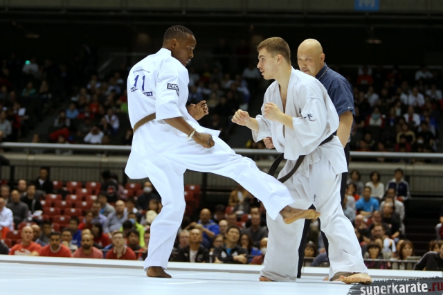 Вторым российским бойцом стартовавшим на 11-м абсолютном Чемпионате мира по киокушинкай, стал самый легкий боец нашей сборной хабаровчанин Кирилл Псарев. При собственном весе 65 кг, Кирилл отобрался на абсолютный чемпионат мира, где самоотоверженно сражался в каждом бою, невзирая на габариты оппонентов. Его первым соперником стал Андиле Манс - боец из Южной Африки.