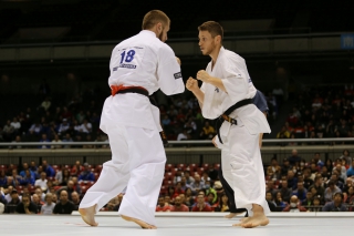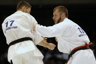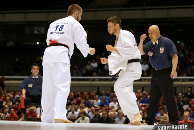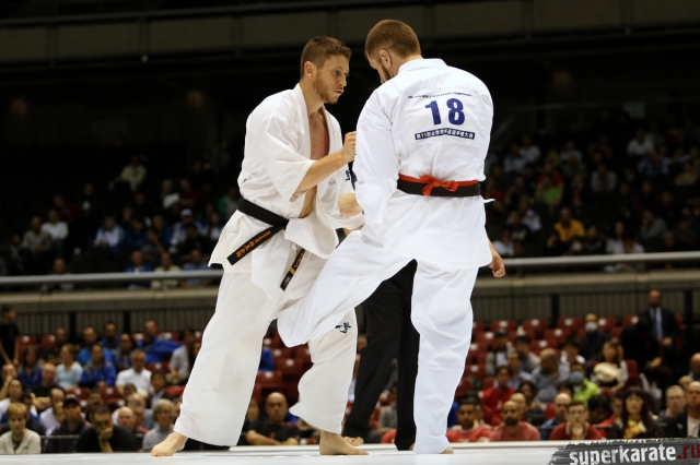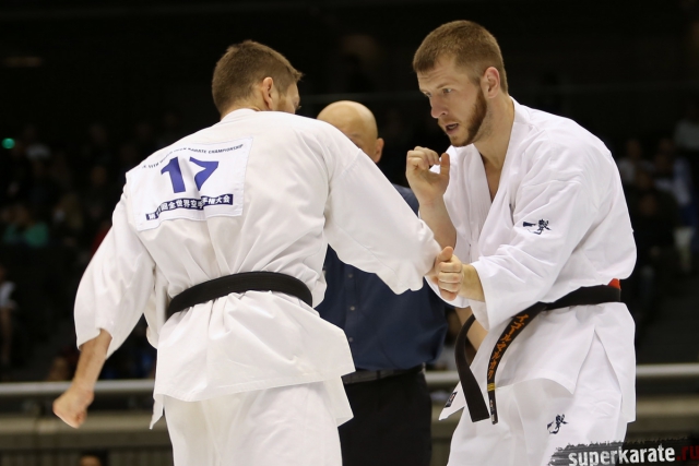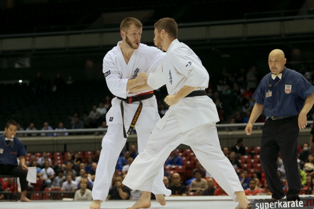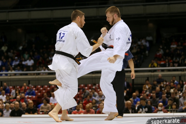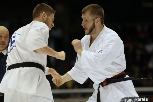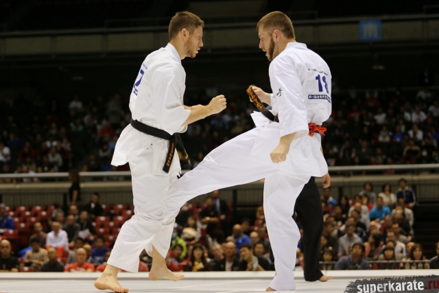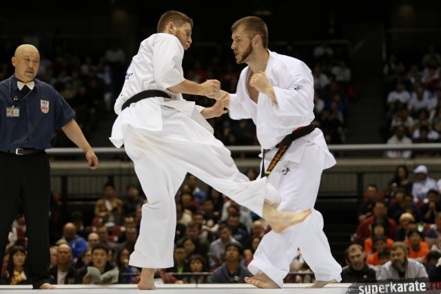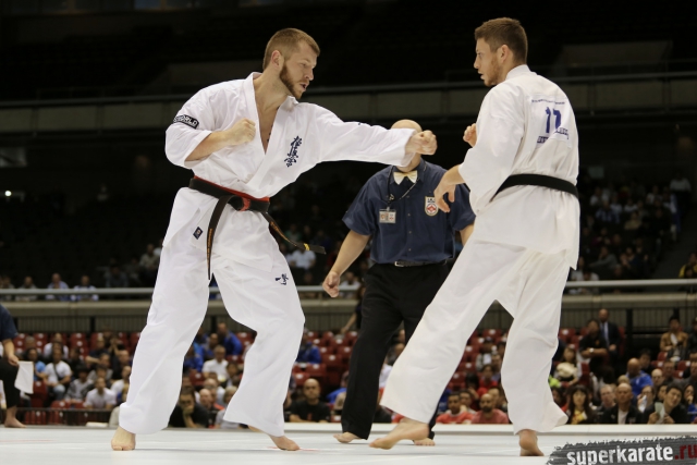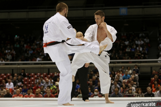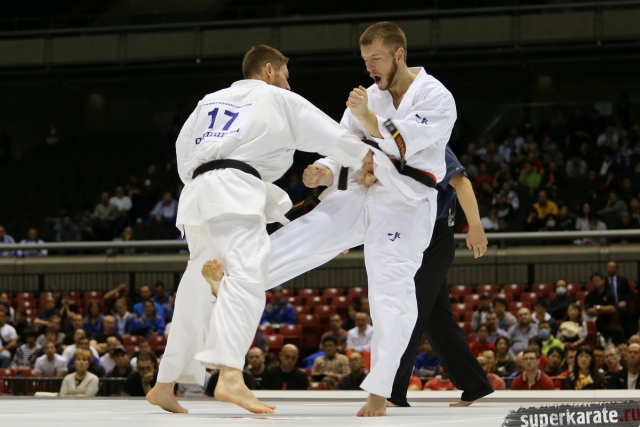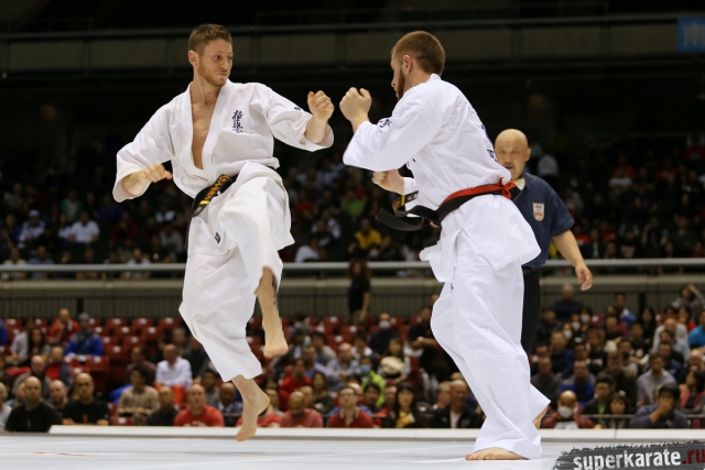На 11-м абсолютном Чемпионате мира по киокушинкай спортсмены израильской сборной показали себя крепкими и хорошо обученными бойцами. Конечно их уровень далек от запредельно высокого уровня российской команды, но дрались они неплохо. В шестом бою турнира бойцу из Израиля Алону Дагану противостоял Игорь Маркач.