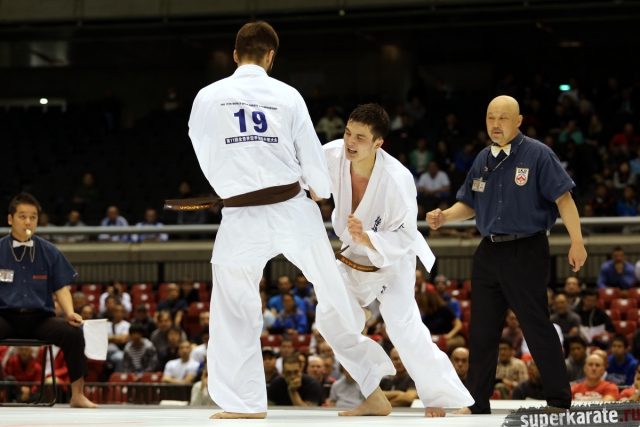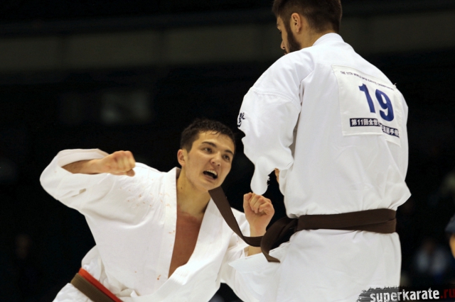 Руслан Ахмедов один из тех бойцов, кто способен на много лет усилить сборную России. Ему всего 21 год, он занимается у одного из лучших тренеров в мире, его спарринг-партнеры - элита мирового киокушина, да и сам он готов и способен составить конкуренцию любому сопернику. Первым его оппонентом на 11-м абсолютном чемпионате мира стал Ерболат Канапин - Чемпион Азии из сборной Казахстана.