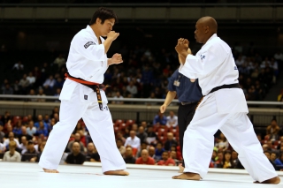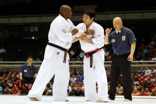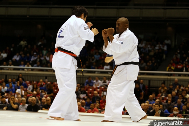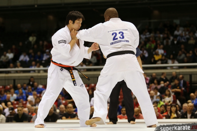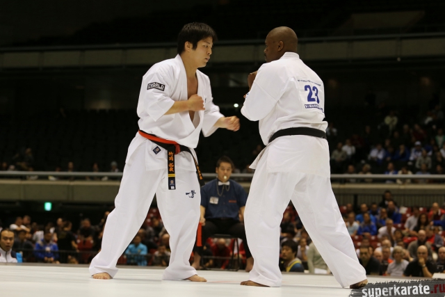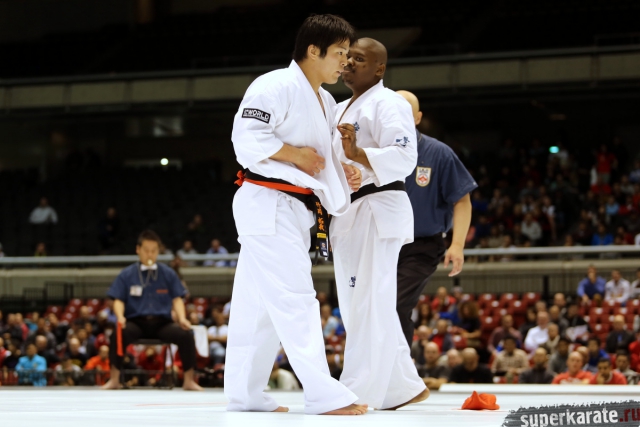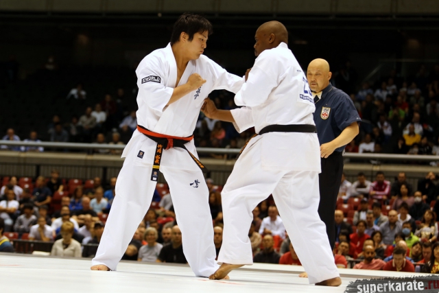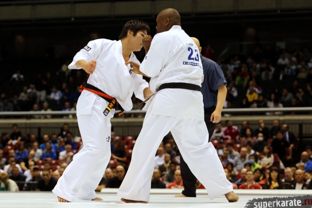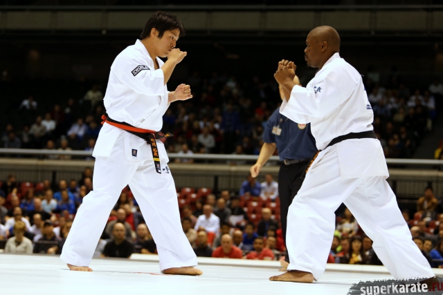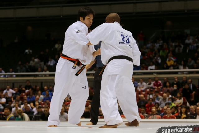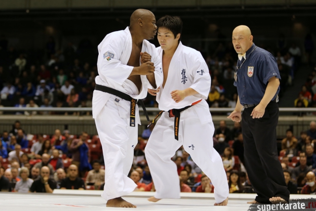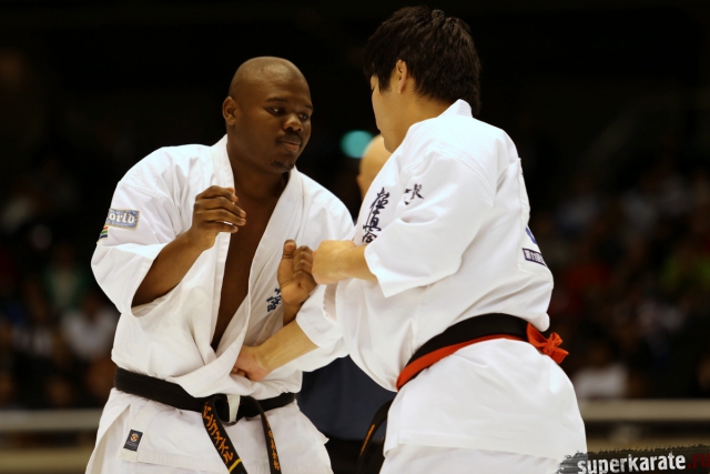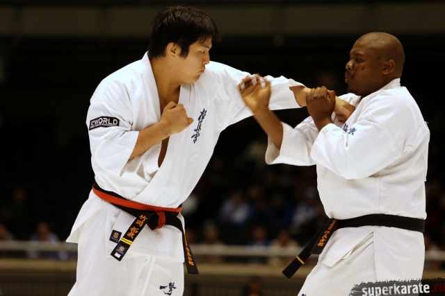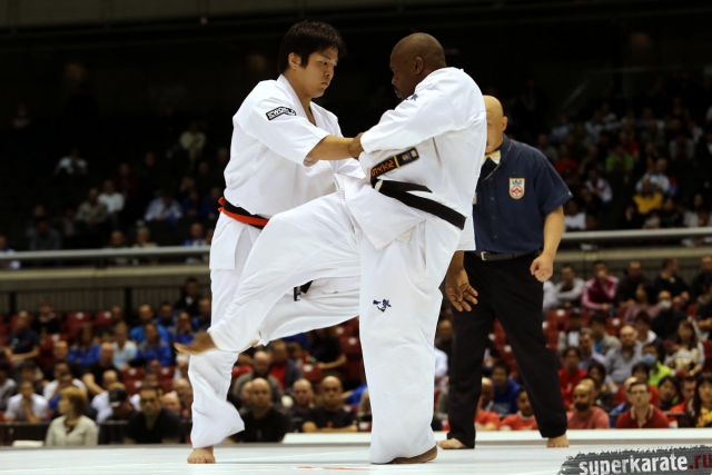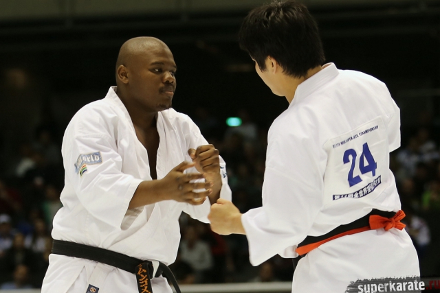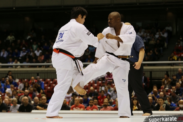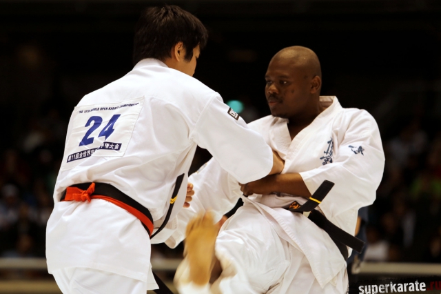 Японскому бойцу Такуя Такеока, ростом всего 168 см, в первом бою 11-го абсолютного Чемпионата мира, в соперники совершенно «случайно» попался африканский спортсмен Тамсанква Мнгомезулу, рост которого оказался еще меньше - 166 см. Разница в уровне бойцов была видна невооруженным взглядом, и хотя боец из ЮАР при своем росте весил целых 88 кг, ощутимого ущерба он бойцу японской сборной не нанес.
