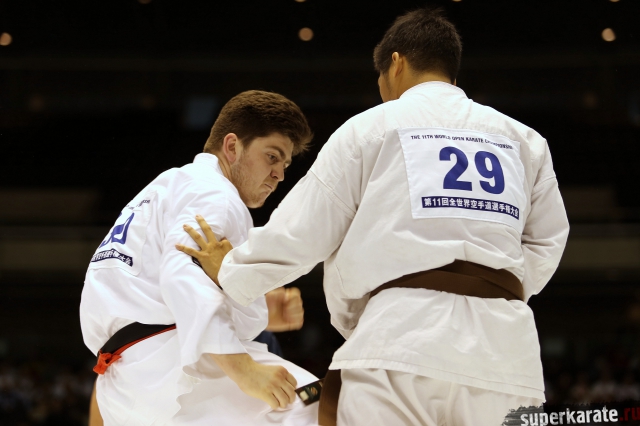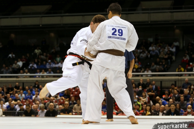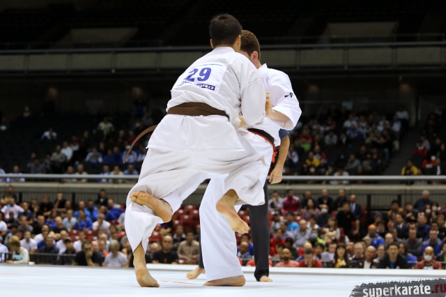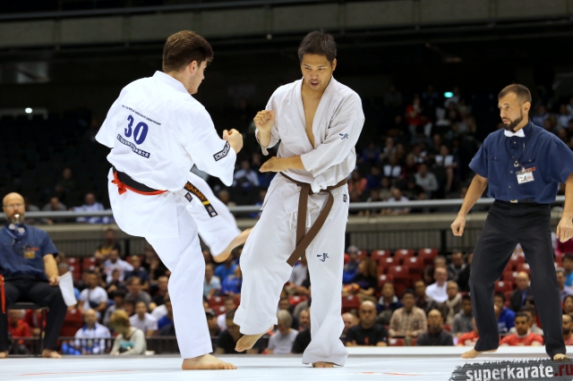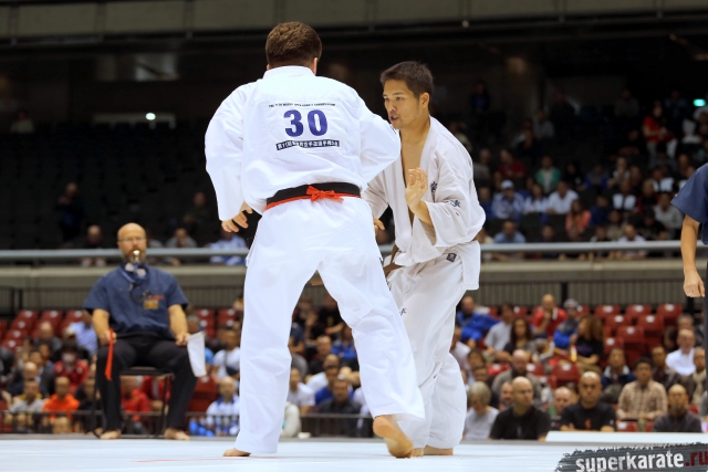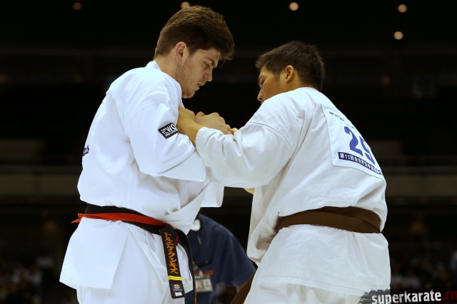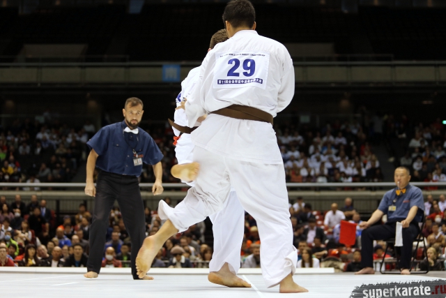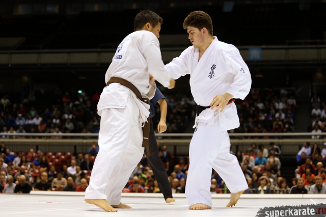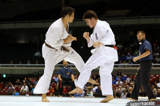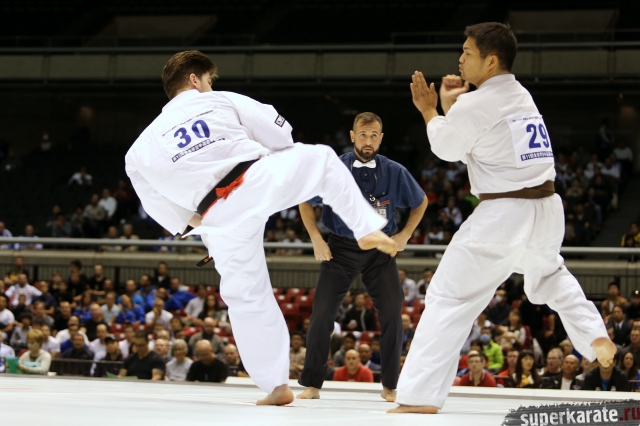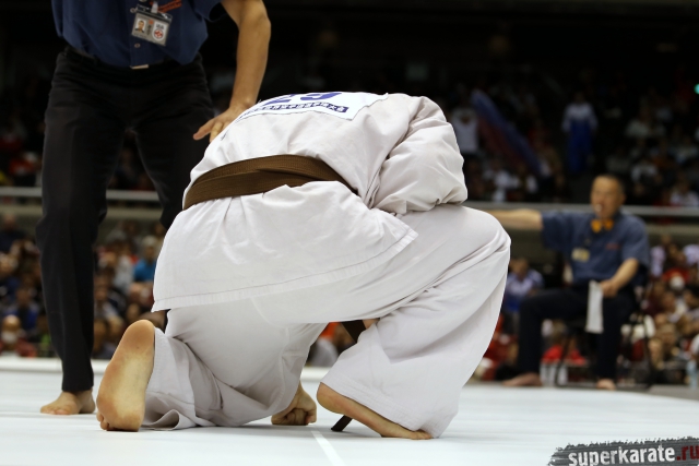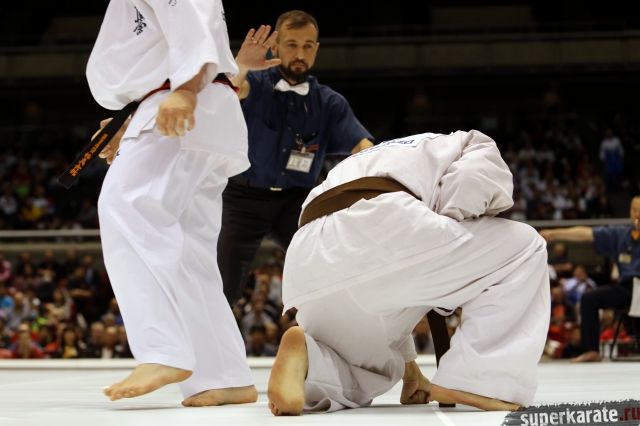 Девятый бой на чемпионате мира не состоялся из-за неявки одного из бойцов. Зато в десятом поединке 11-го абсолютного Чемпионата мира по киокушину состоялся первый нокаут чемпионата.