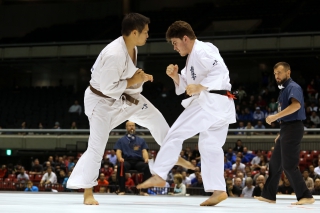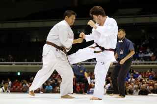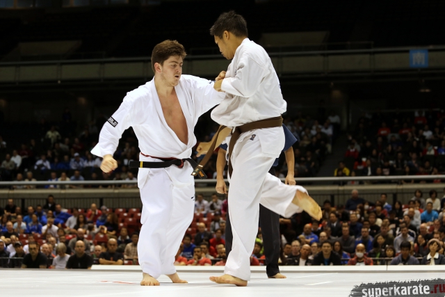 Корпус американского бойца Хоанга Нгуена не выдержал жесткие удары шита цуки от спортсмена из московского «Мицудена» и все судьи показали Иппон - чистую победу.
