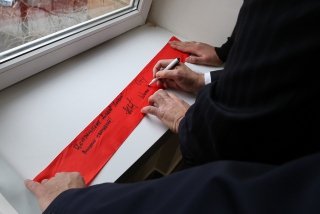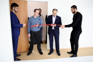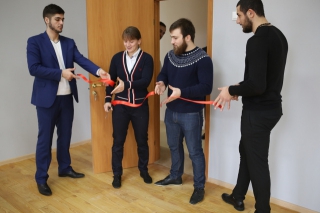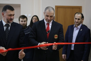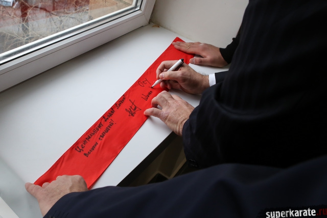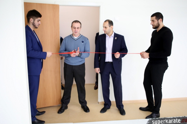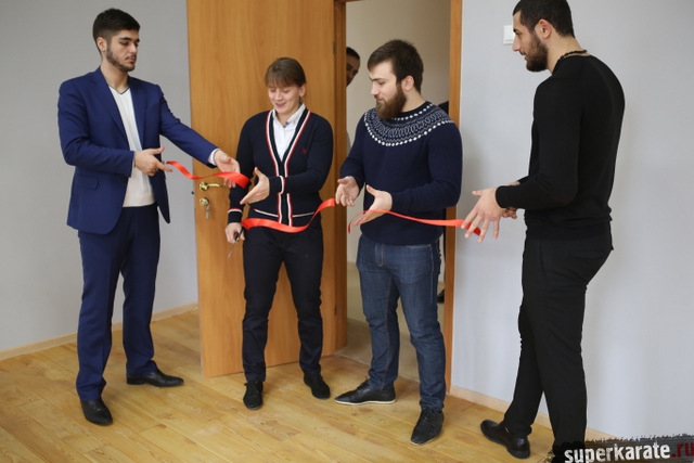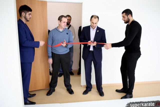 Красную ленточку на входе в Доджо разрезали шихан Александр Ипатов, шихан Артур Ованнисян и сэнсей Джоджи Хибино.