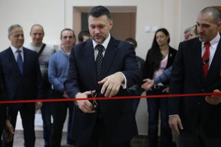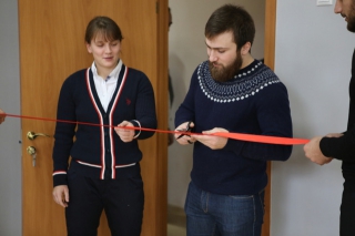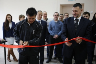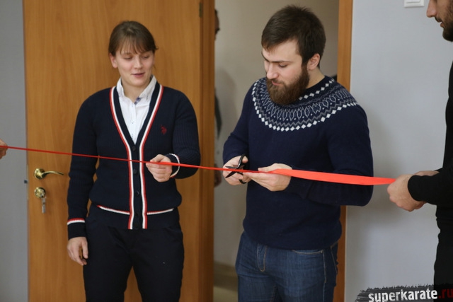 Первый зал открыли чемпионы мира Анастасия Хрипунова и Тариел Николеишвили, они тоже разрезали красную ленточку.