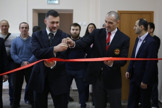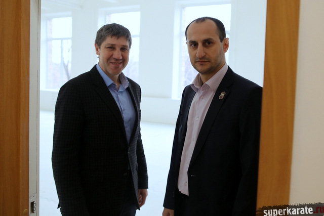 В самый большой зал Доджо, который по цвету стен и татами получил название «Белый зал», ленточку перерезали главный виновник торжества - сэнсей Карен Гядукян и шихан Сергей Герасимов.