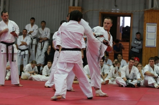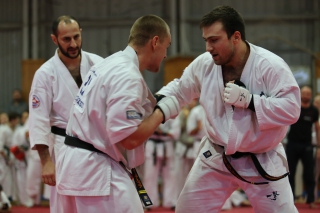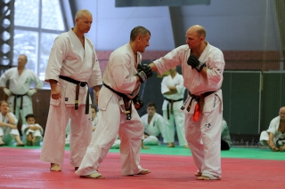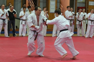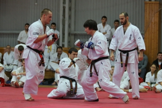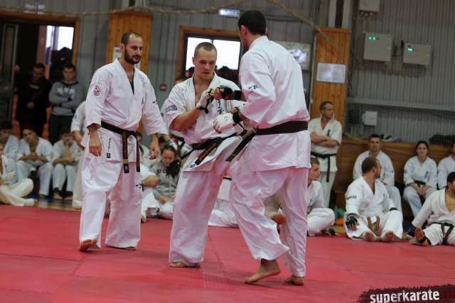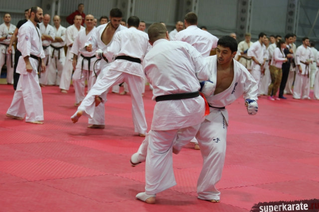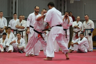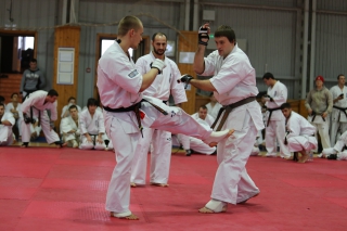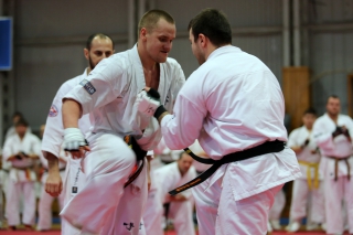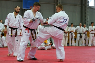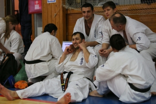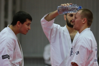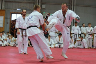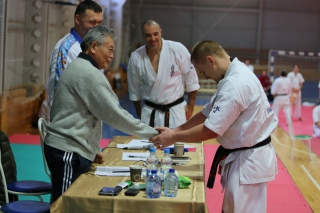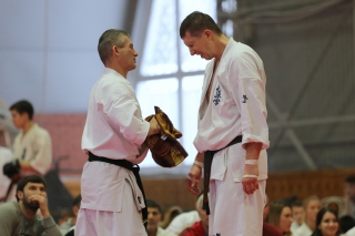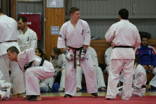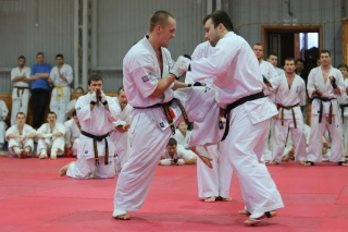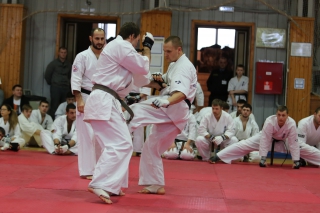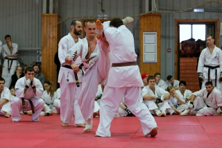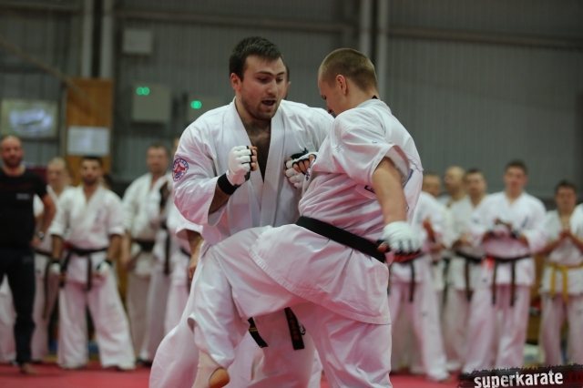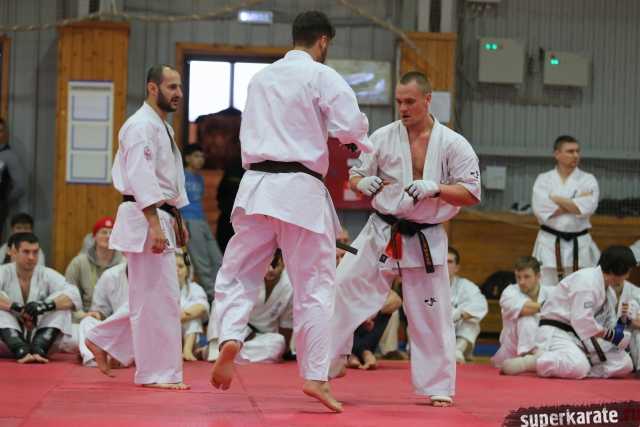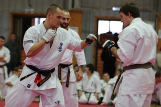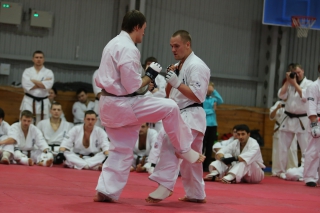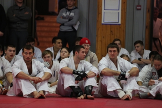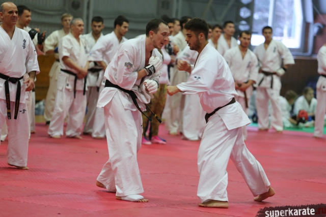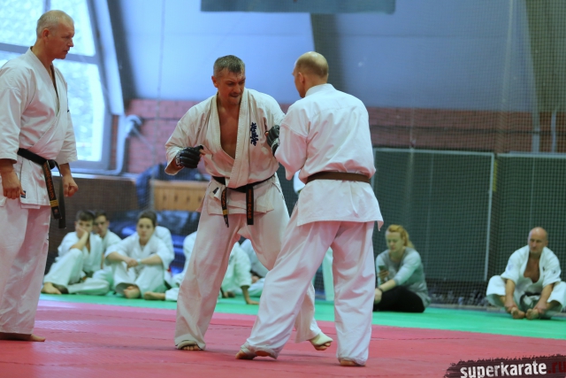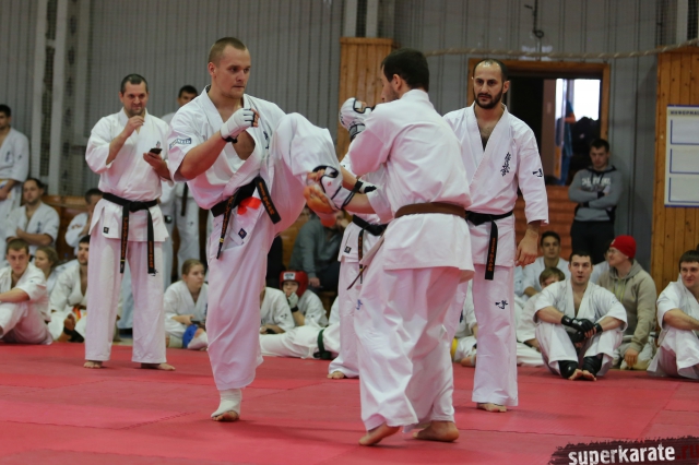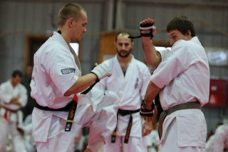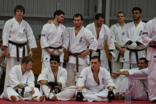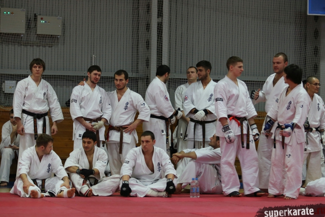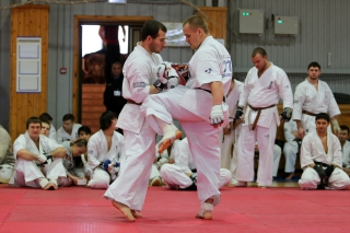 На Зимней школе РНФКК вошла в традицию отбивка претендентов на черные пояса бойцами сборниками. На этот раз в сборах принимали участие сразу 18 бойцов - участников абсолютных чемпионатов мира, и еще двое - Артур Бабаев и Сергей Увицкий были в группе поддержки.