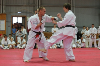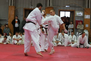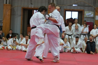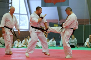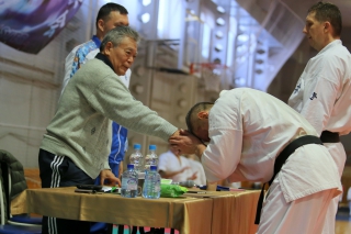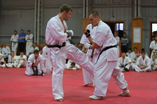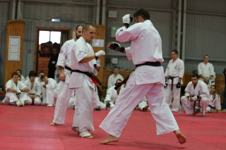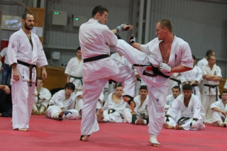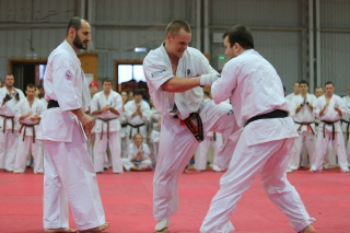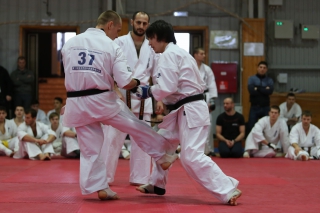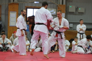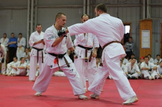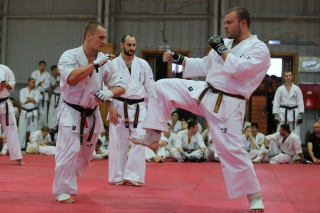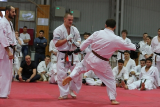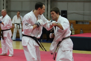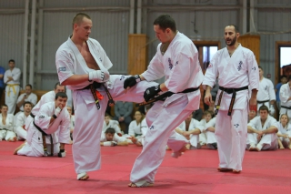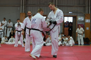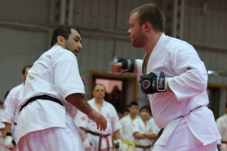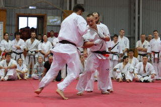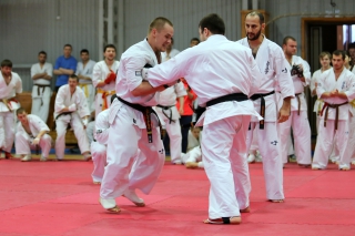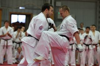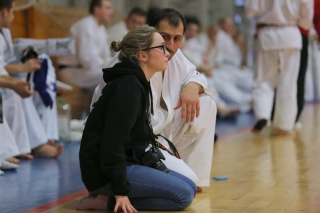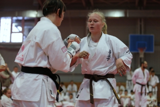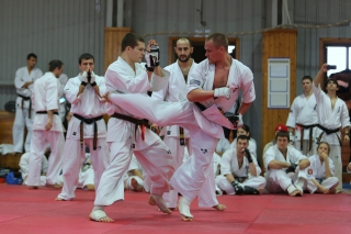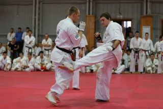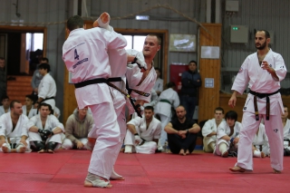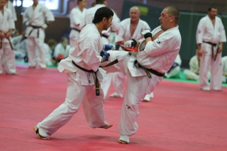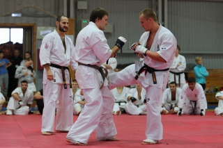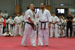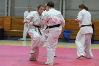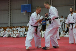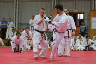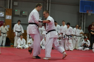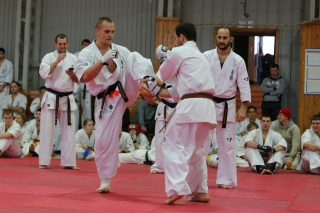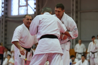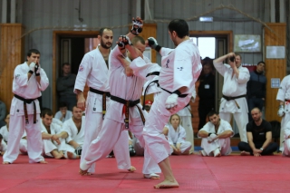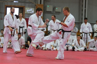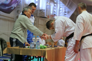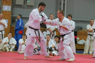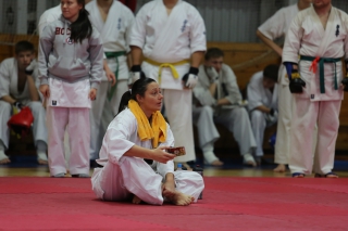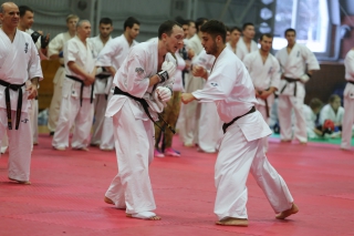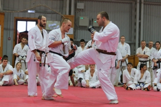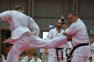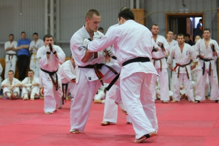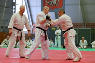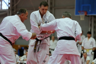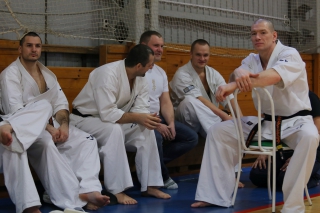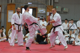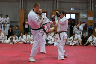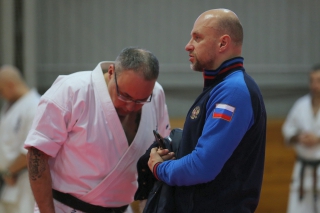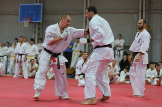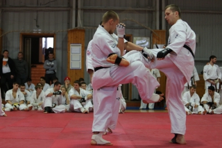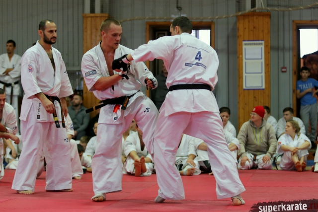 На Зимней школе РНФКК вошла в традицию отбивка претендентов на черные пояса бойцами сборниками. На этот раз в сборах принимали участие сразу 18 бойцов - участников абсолютных чемпионатов мира, и еще двое - Артур Бабаев и Сергей Увицкий были в группе поддержки.