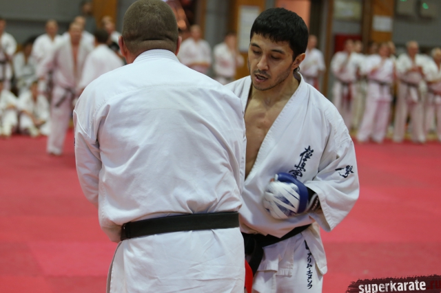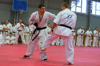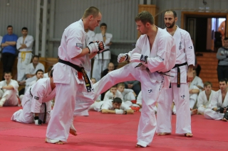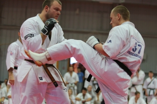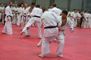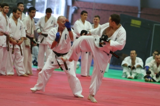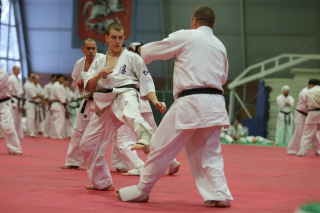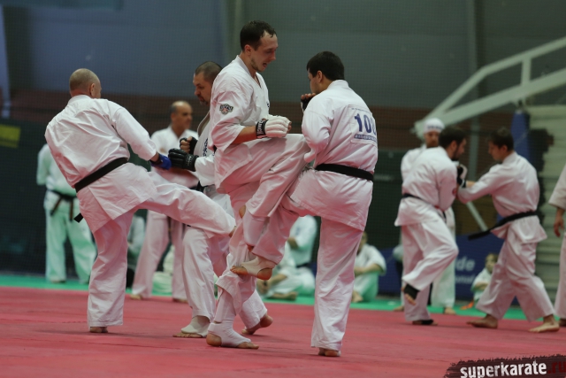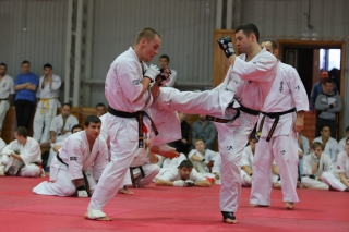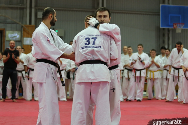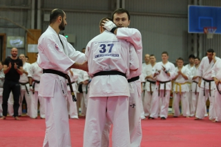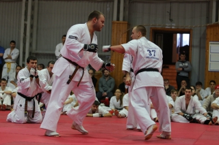 С ростом количества черных поясов, бои дан-тестов все чаще проводятся в круговую. И только избранные получают шанс отбиться в квадрате. В этот раз такой шанс предоставился бойцу сборной России Андрею Чиркову, он единственный был удостоен чести отбиться 30 боев в квадрате.