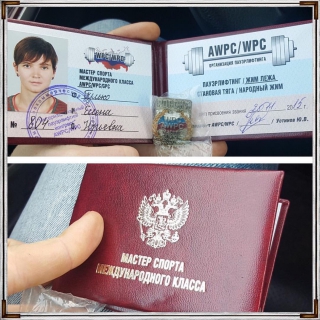 18 февраля 2016 года Елене вручили удостоверение и знак Мастера спорта международного класса по пауэрлифтингу.