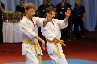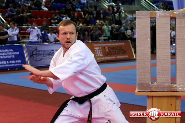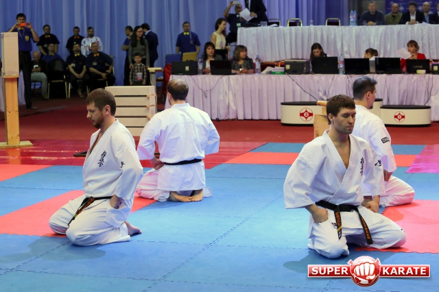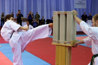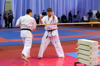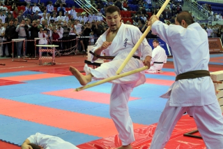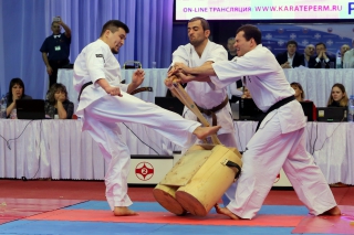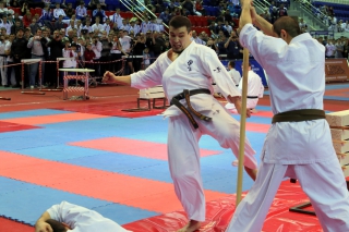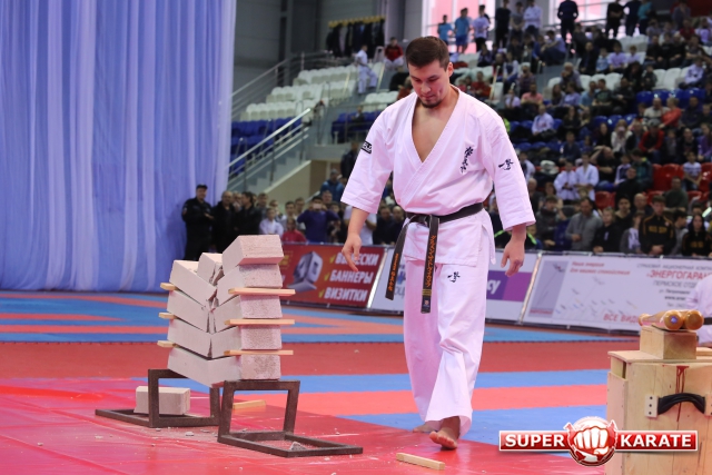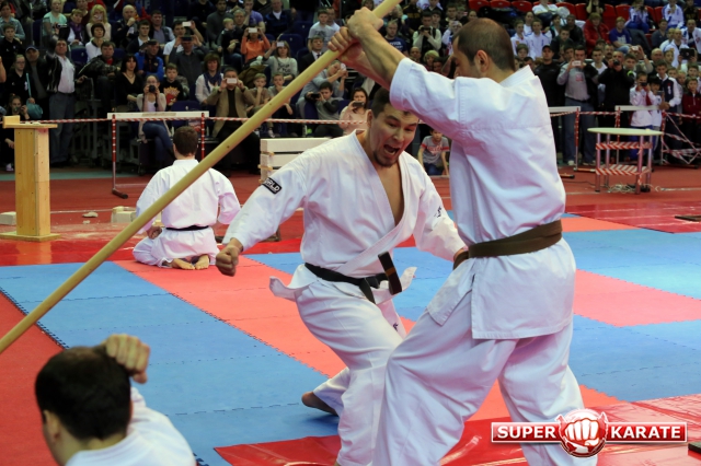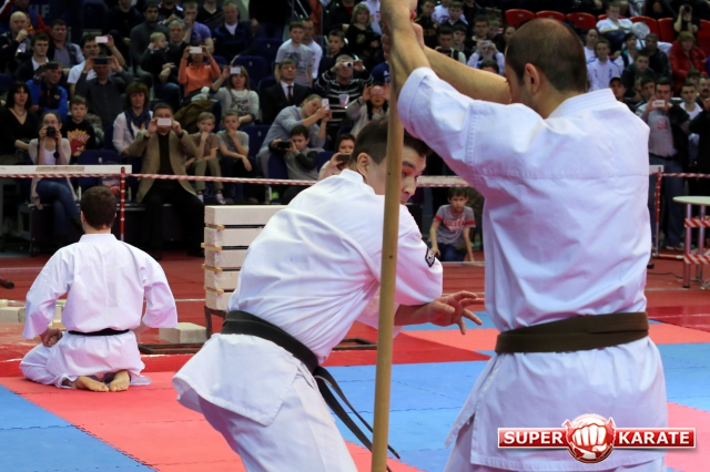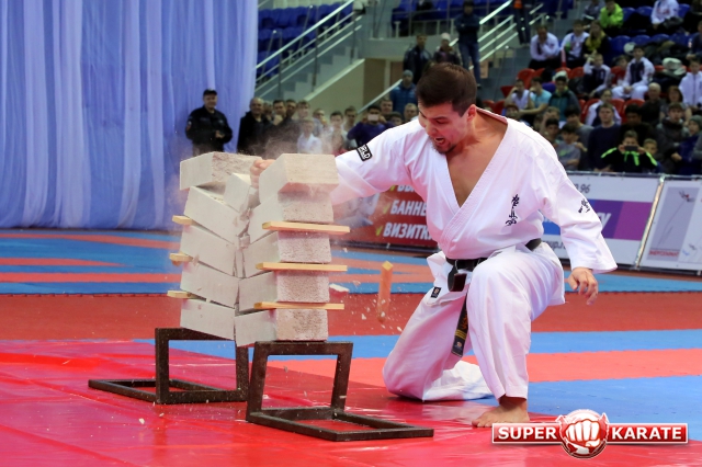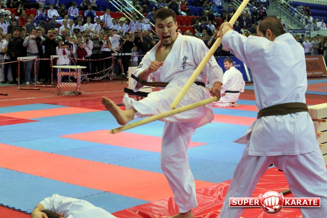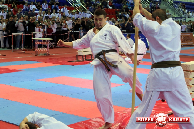Второй день Первенства России украсили показательные выступления победителей в дисциплине ката и тамэшивари в исполнении команды титулованных спортсменов, в которую вошли: Дармен Садвокасов, Денис Кухарев, Евгений Шевнин и Игорь Титков.