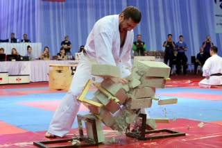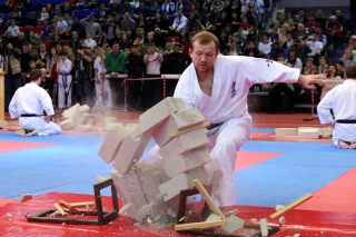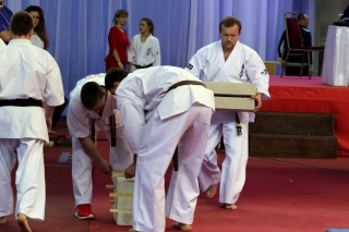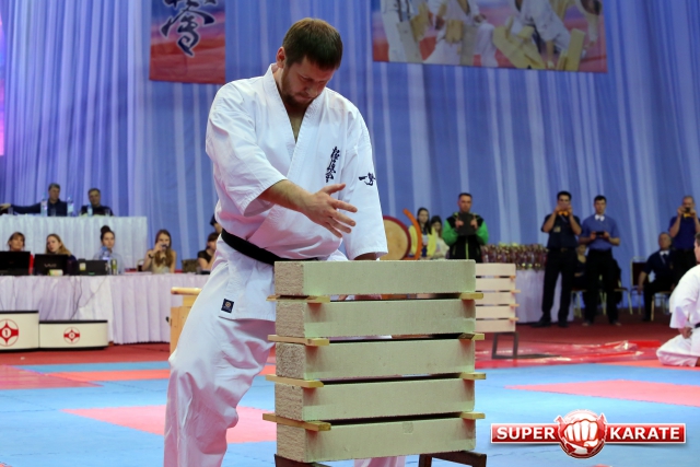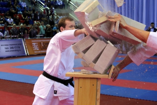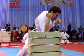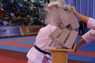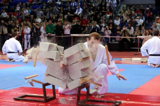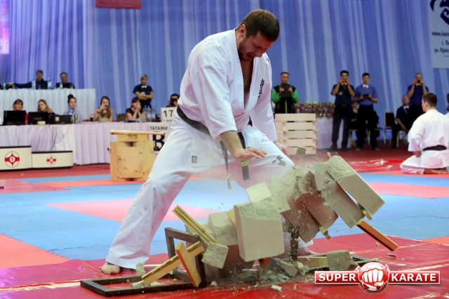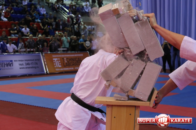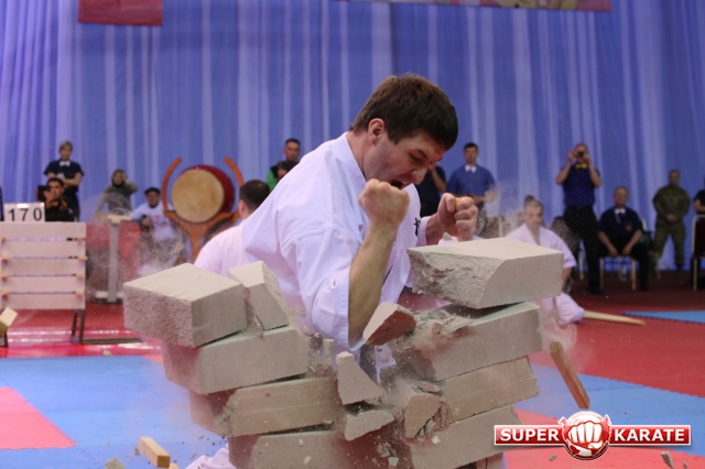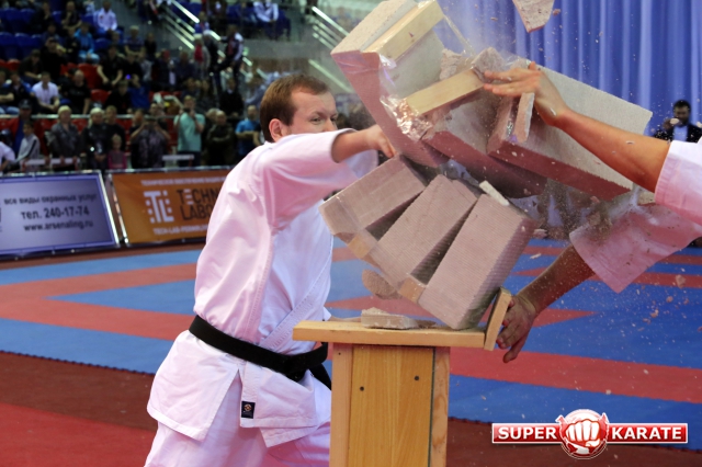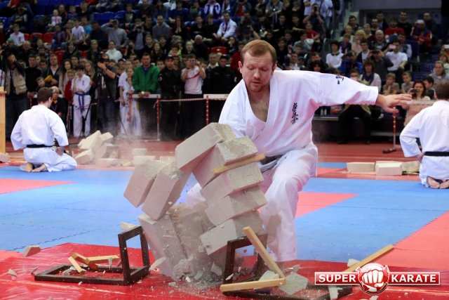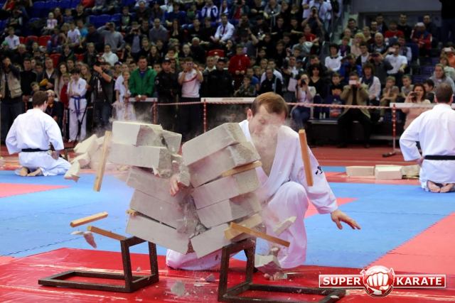Не все складывалось гладко в тамэшивари, но это лишь подчеркивало то, что здесь все по-настоящему. Игорь Титков на первом разбивании ударом Хайто сломал не только бетонные блоки, но и руку. Но это не помешало ему этой же рукой выполнить еще одно тамэшивари.