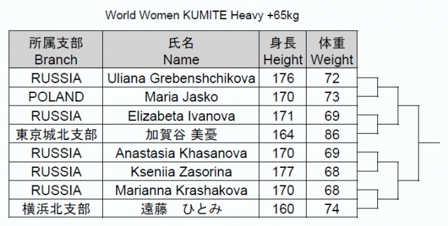 В тяжелом весе у женщин российское представительство особенно впечатляющее: Ульяна Гребенщикова, Ксения Засорина, Анастасия Хасанова, Марианна Крашакова и Елизавета Иванова.