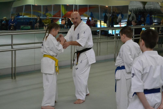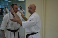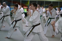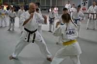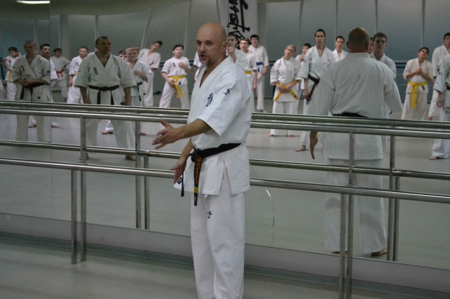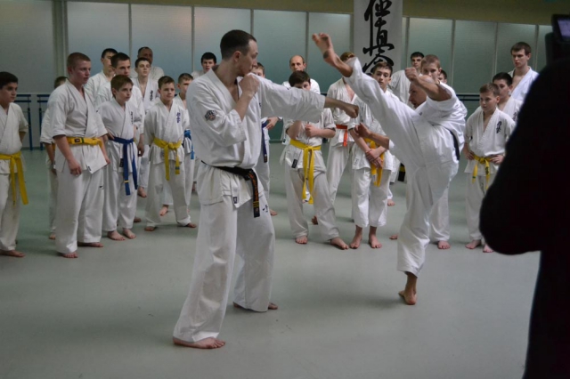 Было очень интересно наблюдать за средствами и методами тренировки, которыми пользовался сэнсэй Ильмов. Для каждого возраста был подобран свой подход. Детям было преподнесено подробное описание разминки на месте, а также кихон и идо-гейко. На каждом действии останавливались и осознавали "зачем и почему делается именно так и не иначе, откуда берется сила удара?". Ребятами тренировка была воспринята с большим интересом. Сэнсэем было замечено как у некоторых детей глаза "загорались" азартом и любознательностью к происходящему.