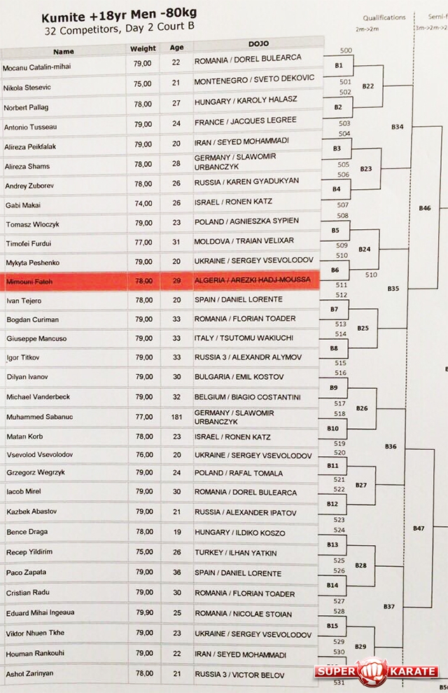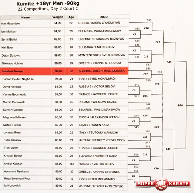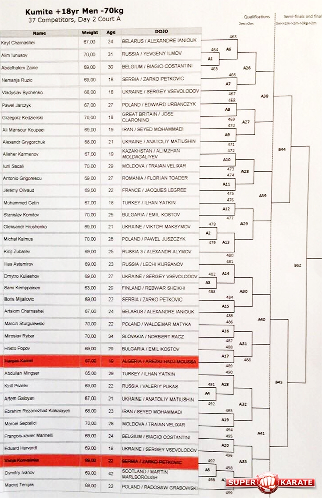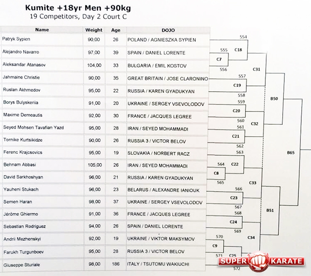 Пули 30-го Чемпионата Европы 2016 по киокушинкай (IKO)
