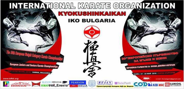 22 мая 2016 года в Варне, Болгария, пройдет 30-й Чемпионат Европы 2016 по киокушинкай (The 30th European Weight Category Karate Championships).