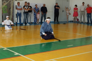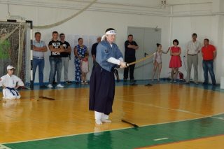 На открытии турнира выступил Шумлянский Александр (1-й дан), руководитель клуба «Азовские котята» выступил с боевым оружием: японским мечом – катана, нунчаки, казацкая нагайка.